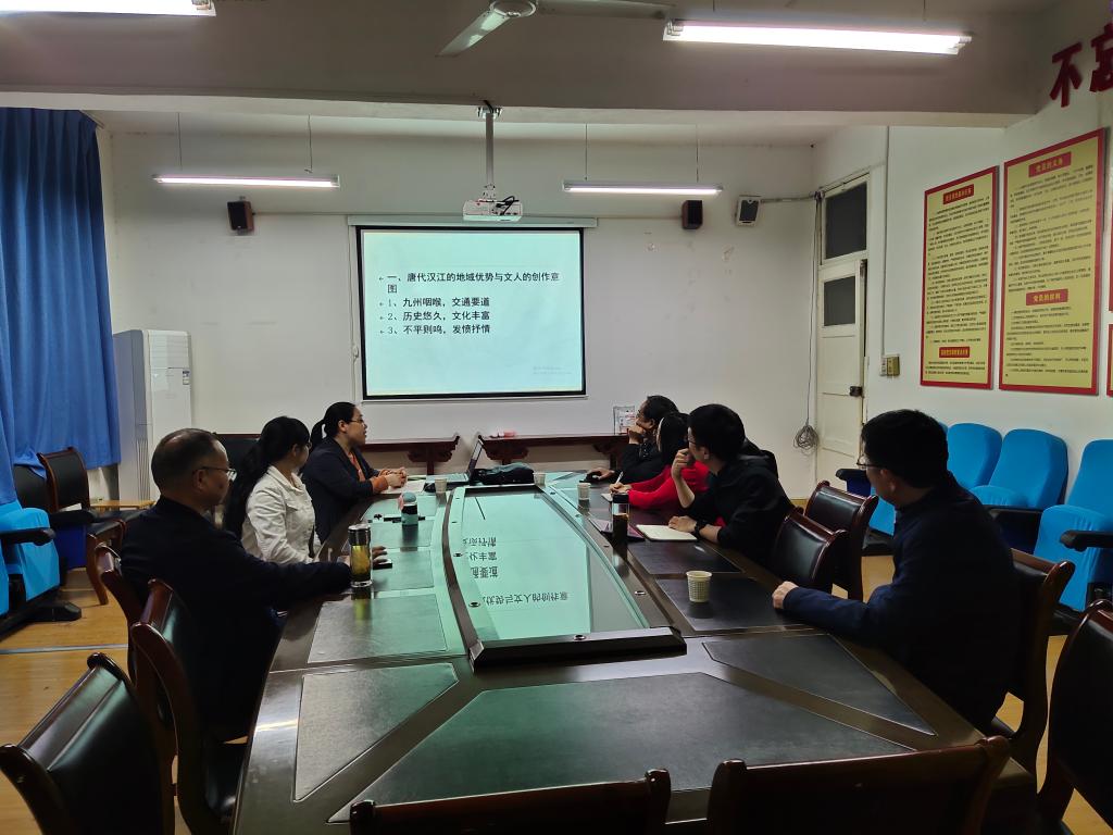 王丽芳老师作为主讲人,从“唐代汉江的地域优势与文人的创作意图”、“唐诗中的汉江意象”、“汉江意象在唐诗中的价值”三个方面做了题为《河流意象与唐代文人汉江诗》的学术报告。报告认为,汉江是唐诗中的一个重要意象,大量包含汉江意象的诗歌体现了诗人们复杂的感情世界、重现了汉江流域厚重的历史底蕴、展示了汉江流域丰富的风土人情与优美的景色。报告最后指出,汉江作为唐诗意象群中独特的地域意象,在文学史的发展中具有独特的价值,汉江意象延续了《召南》的地域书写、延续了《楚辞》的“贞怨”书写、延续了抱瓮丈人的“田园书写”。