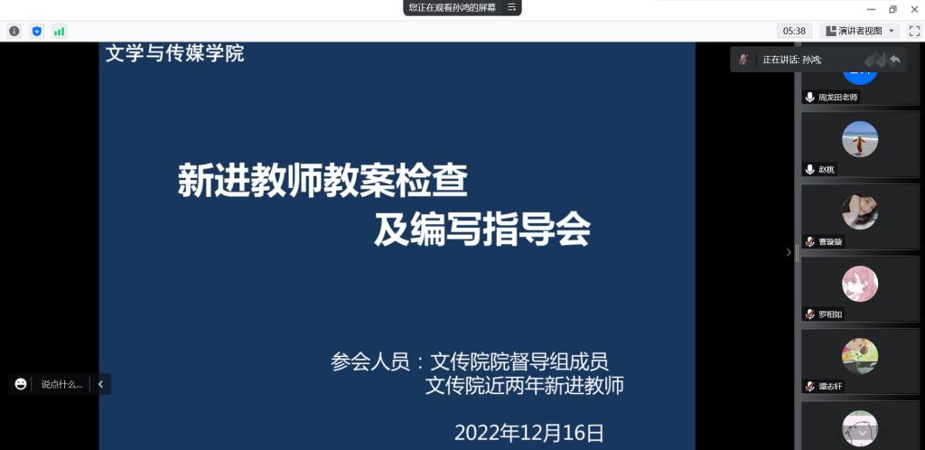 12月16日晚,澳门网投唯一官网教学督导组组长孙鸿组织召开新进教师教案检查及编写指导会,与会人员包括学院教学督导、近两年新进教师。