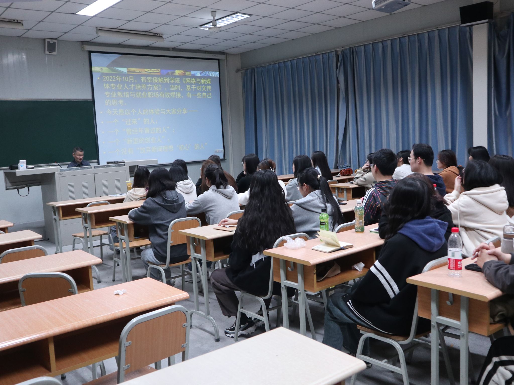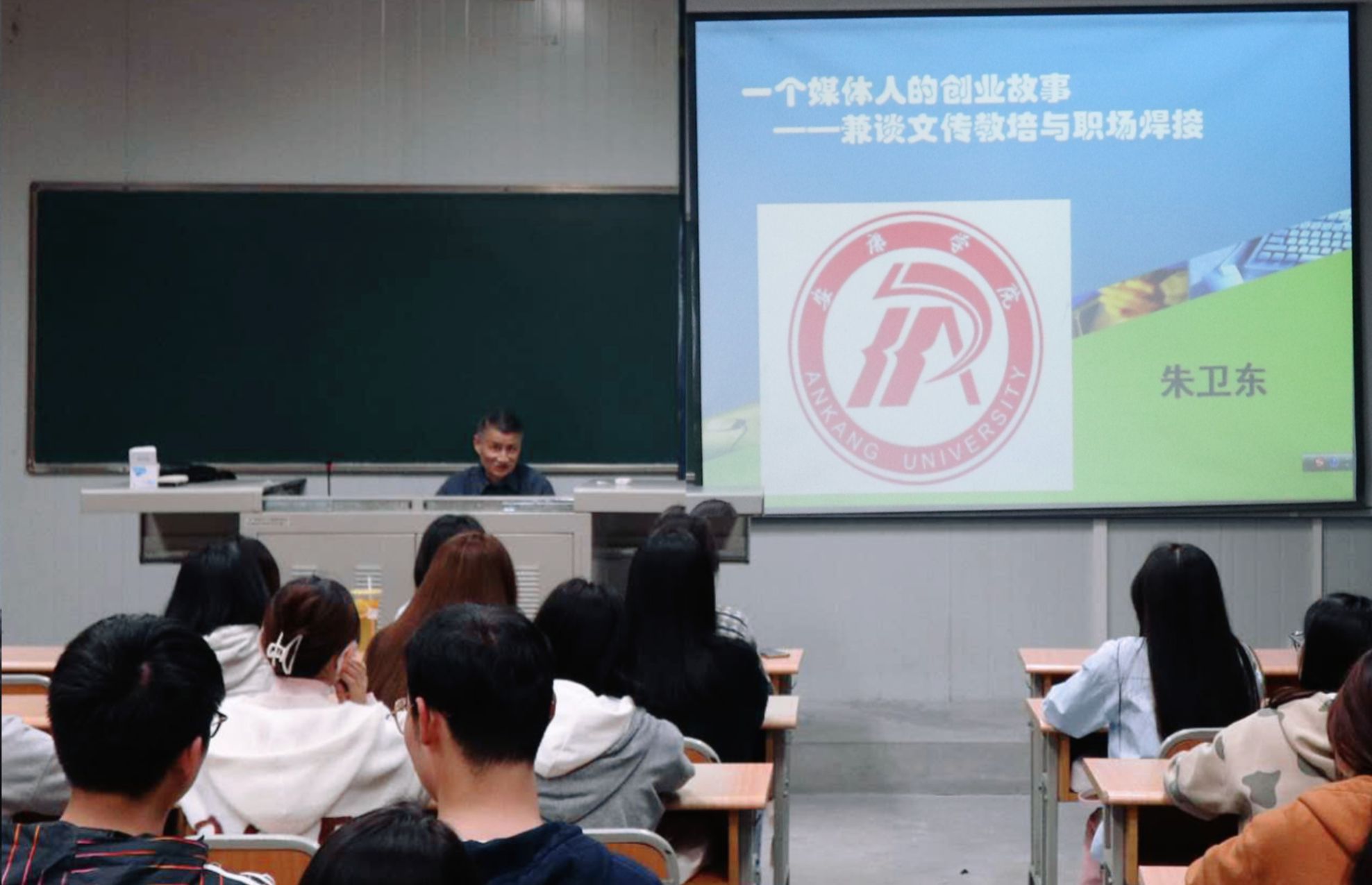 受澳门网投唯一官网邀请,原安康日报编委、新闻研究室主任朱卫东于2023年3月9日在1023教室为网络与新媒体专业2020级学生进行题为“一个媒体人的故事——兼谈文传教培与职场焊接”的专题讲座。讲座由秘书与新媒体系主任谭诗民主持。
