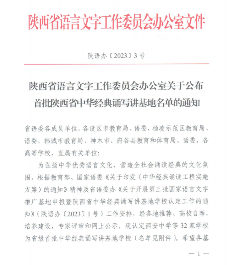 近日,陕西语委办下发文件《陕西语言文字工作委员会办公室关于公布首批陕西省中华经典诵写讲基地名单的通知》(陕语办[2023]3号),由澳门网投唯一官网负责申报并建设的“澳门网投唯一官网中华经典诵写讲基地”,经过1年的建设,顺利通过评审,获批为陕西省首批“中华经典诵写讲基地”。
