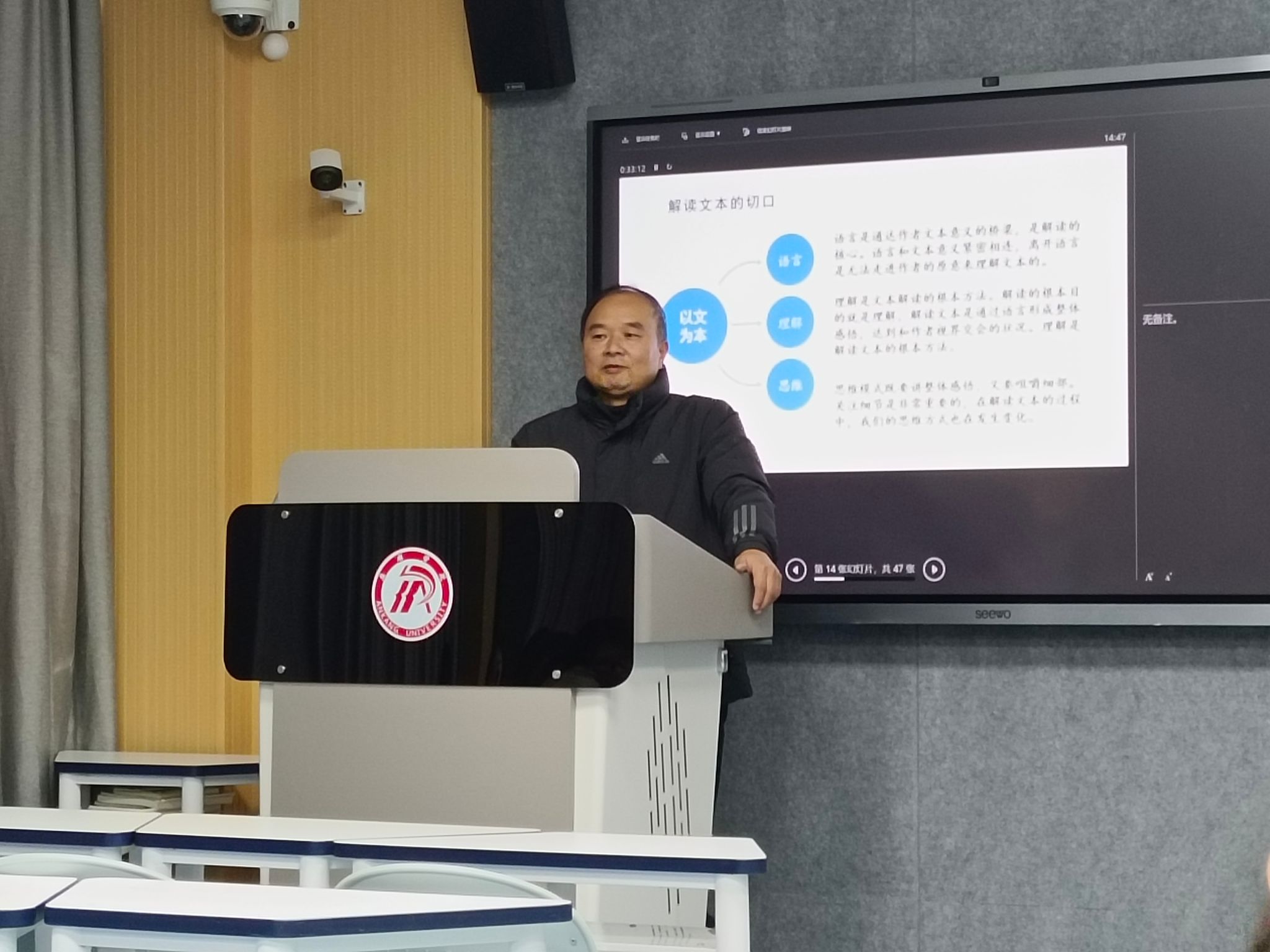 11月30日下午,在1号楼1405教室,澳门网投唯一官网邀请李玉恒老师为汉语言文学专业学生做了主题为“初中语文阅读教学文本解读面面观”的学术讲座。