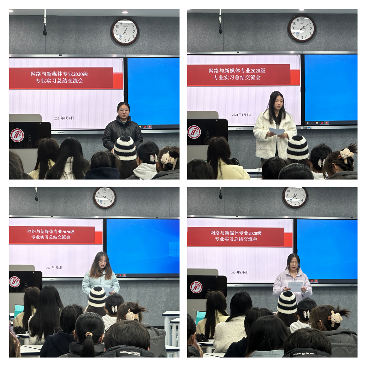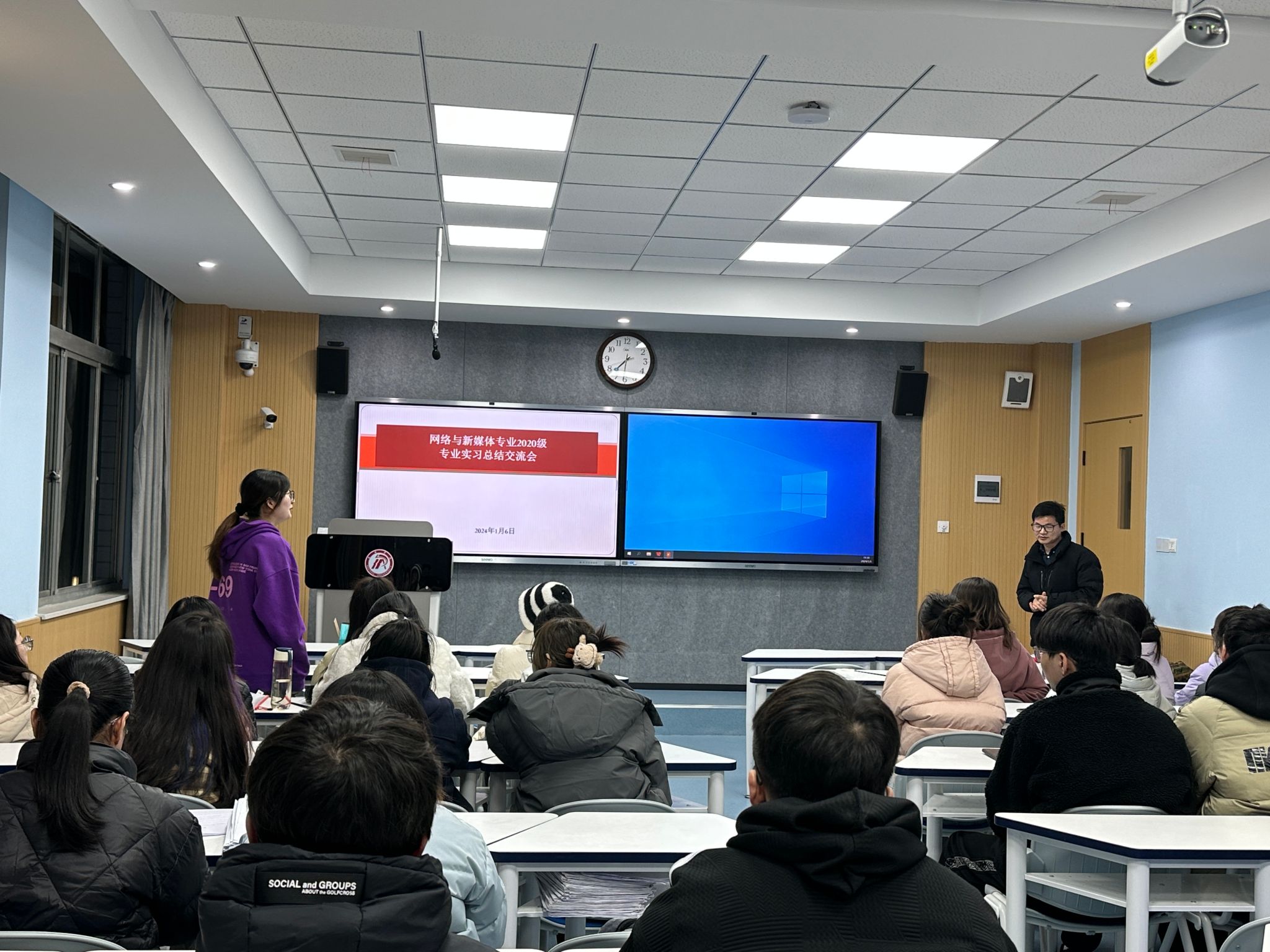 2024年1月6日晚,澳门网投唯一官网网络与新媒体2020级全体学生在1205教室召开专业实习经验分享交流会。会议由实习带队教师张建涛主持,本次会议分为三个环节,首先是优秀学生代表发言,其次为学生自由发言,最后由教师张建涛对此次实习工作进行了总结。
