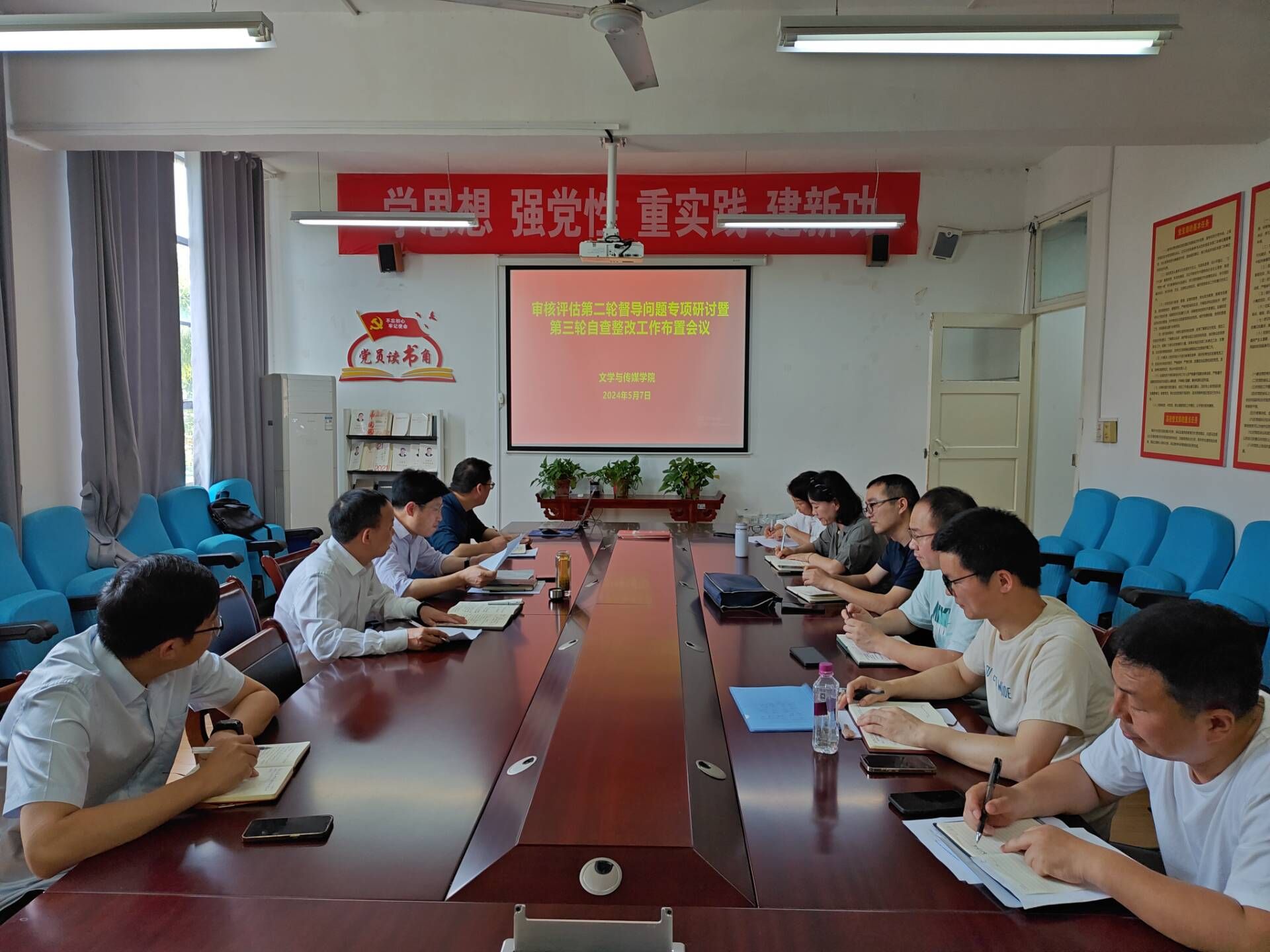 党总支书记芦伟对与审核评估相关的学生工作做了补充说明,并鼓励全体与会人员不怕困难、迅速进入角色,以饱满的工作热情和认真的工作态度做好本职工作。