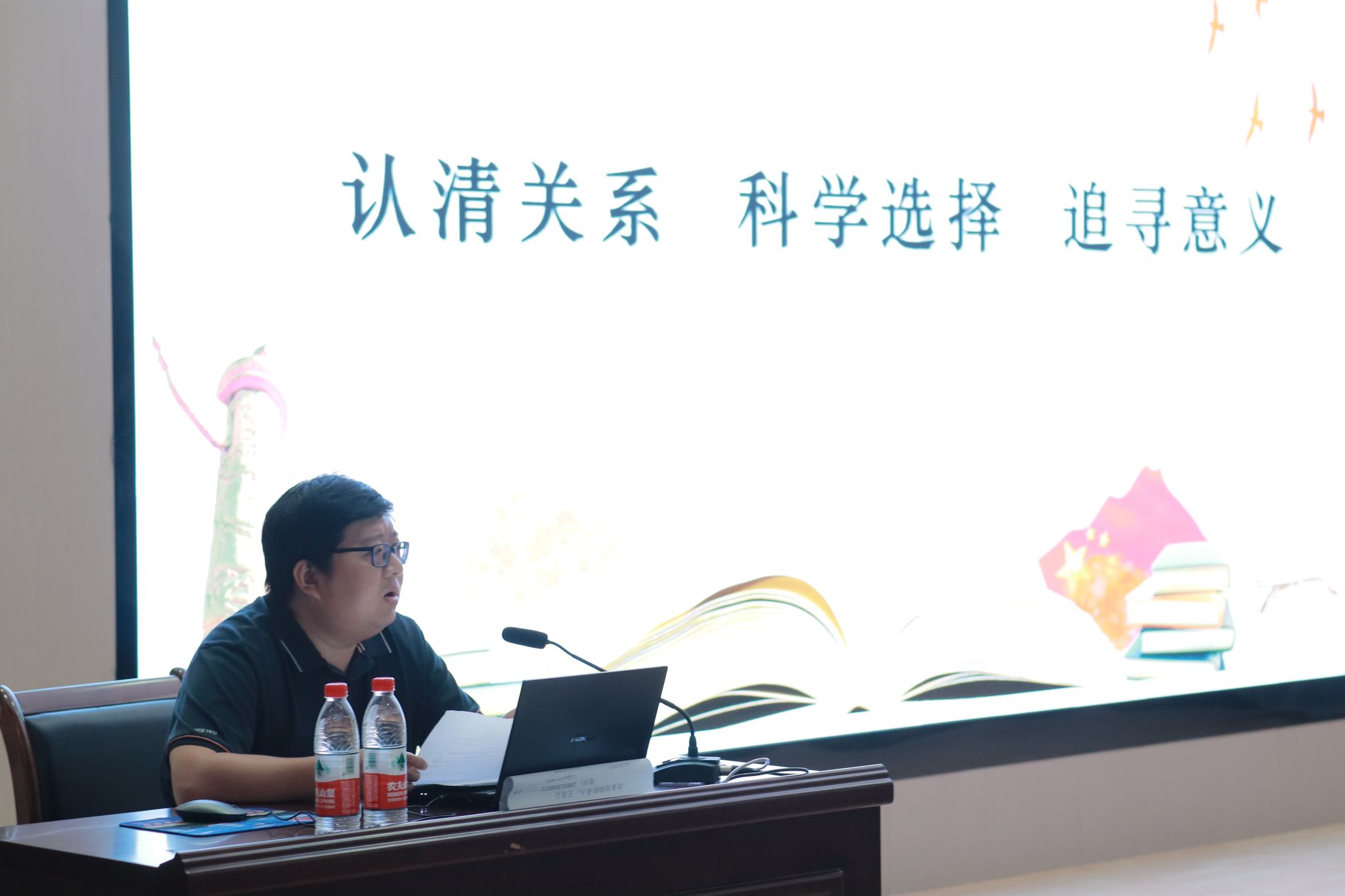 5月9日,小学道德与法制学科“省级教学能手”、 安康市教育体育局李昊老师在江南校区一号教学楼报告厅为汉语言文学专业2021级全体学生做了题为“人情关系 科学选择 追寻意义”的讲座,讲座由系主任谭诗民主持。李老师分析了汉语言文学专业学生的就业趋势,介绍了教育部门关于教师招聘与培养等方面的政策与举措,告诫大家要时刻保持高昂的学习激情,关注政策、学习政策,将个人发展与社会需求紧密融合,做正确的事、正确地做事,进而实现做最好的自己的追求。
