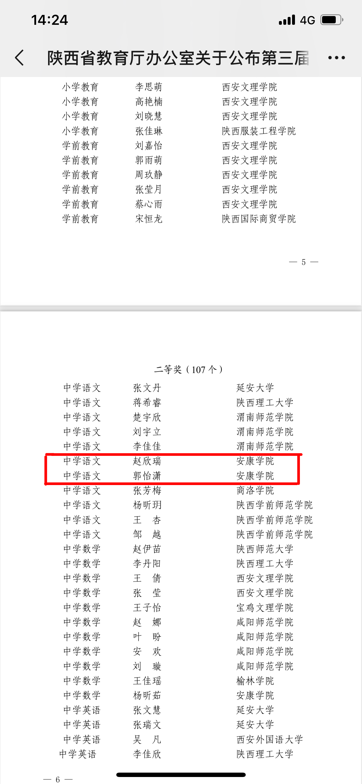 此前,由陕西省教育厅主办、西安文理学院承办、陕西师范大学协办的陕西省第三届高校师范生教育教学能力大赛落下帷幕,澳门网投汉语言文学专业2021级2班赵欣瑞、4班郭怡潇两位同学入围决赛,在张格瑄、唐明珍两位老师的指导下,双双荣获中学语文组二等奖。