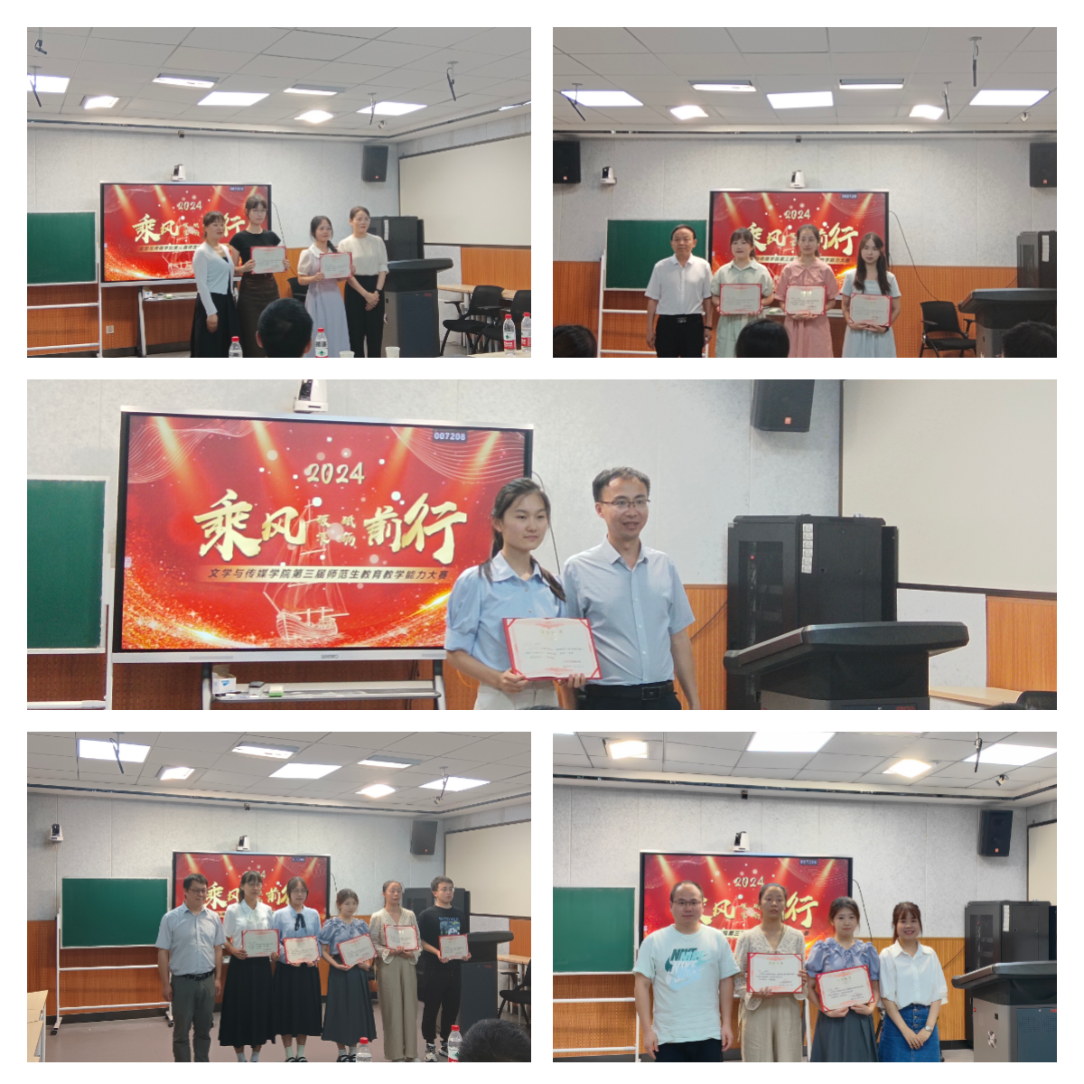 接下来,评委嘉宾和出席领导、老师为获奖选手进行了颁奖。本次比赛设一等奖1名、二等奖2名、三等奖3名、优秀奖6名,最佳板书奖和表达奖各1名。