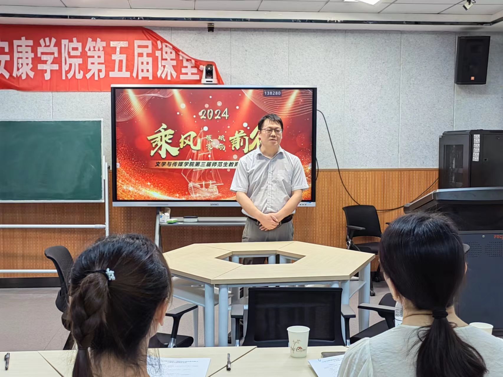 大赛伊始,副院长朱云致开幕词。他首先回顾了学院师范技能大赛举办的历史,指出在师范生教育教学能力大赛前学院已经举办了十余届师范教学技能竞赛,这些赛事作为澳门网投汉语言文学师范专业人才培养的重要平台,在提升学生教育教学技能方面发挥了重要作用;然后对评委的辛苦付出表示了感谢,并预祝选手们在比赛中赛出水平、赛出风格。