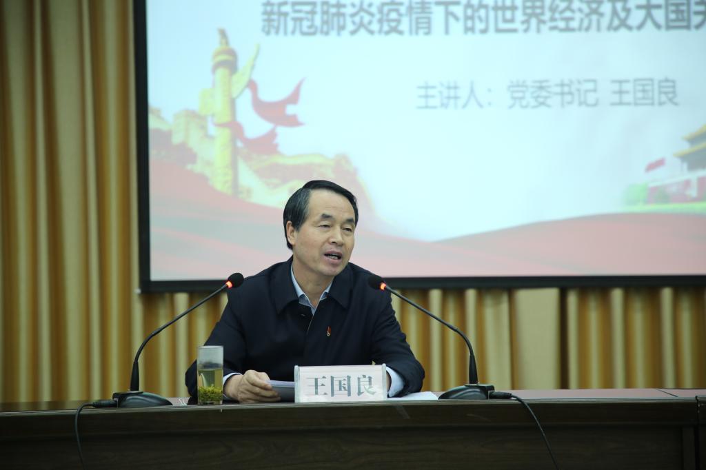 10月28日下午,学校党委书记王国良在图书馆六楼报告厅为澳门网投唯一官网师生和直属二党支部党员讲授题为“新冠肺炎疫情下的世界经济及大国关系”的形势与政策课。学习会议由澳门网投唯一官网党总支书记芦伟主持。