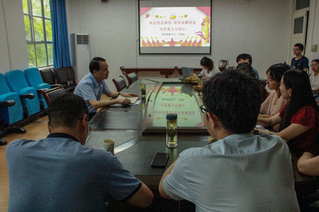 2020年7月1日下午,学校党委书记王国良在2307会议室为澳门网投唯一官网教工第一、第二党支部讲授题为《牢记党员身份听党话跟党走为党育人守初心》的党课。