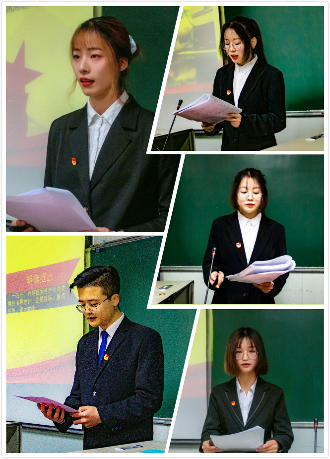 四位学生宣讲团成员分别向与会人员进行第十九届五中全会精神宣讲。宣讲内容主要围绕五个基本方面展开:一、深刻认识我国进入发展阶段的重大意义、有利条件和重要特征;二、统筹好发展和安全两件大事;三、准确把握“十四五”时期我国发展的指导方针、主要目标和2035年远景目标;四、牢牢把握构建新发展格局的战略构想和重要着力点;五、坚定不移的贯彻新理念。现场气氛严肃庄重,宣讲团成员宣讲主题清晰明朗,参会学生认真聆听,有效传达了第十九届五中全会重要精神内容。