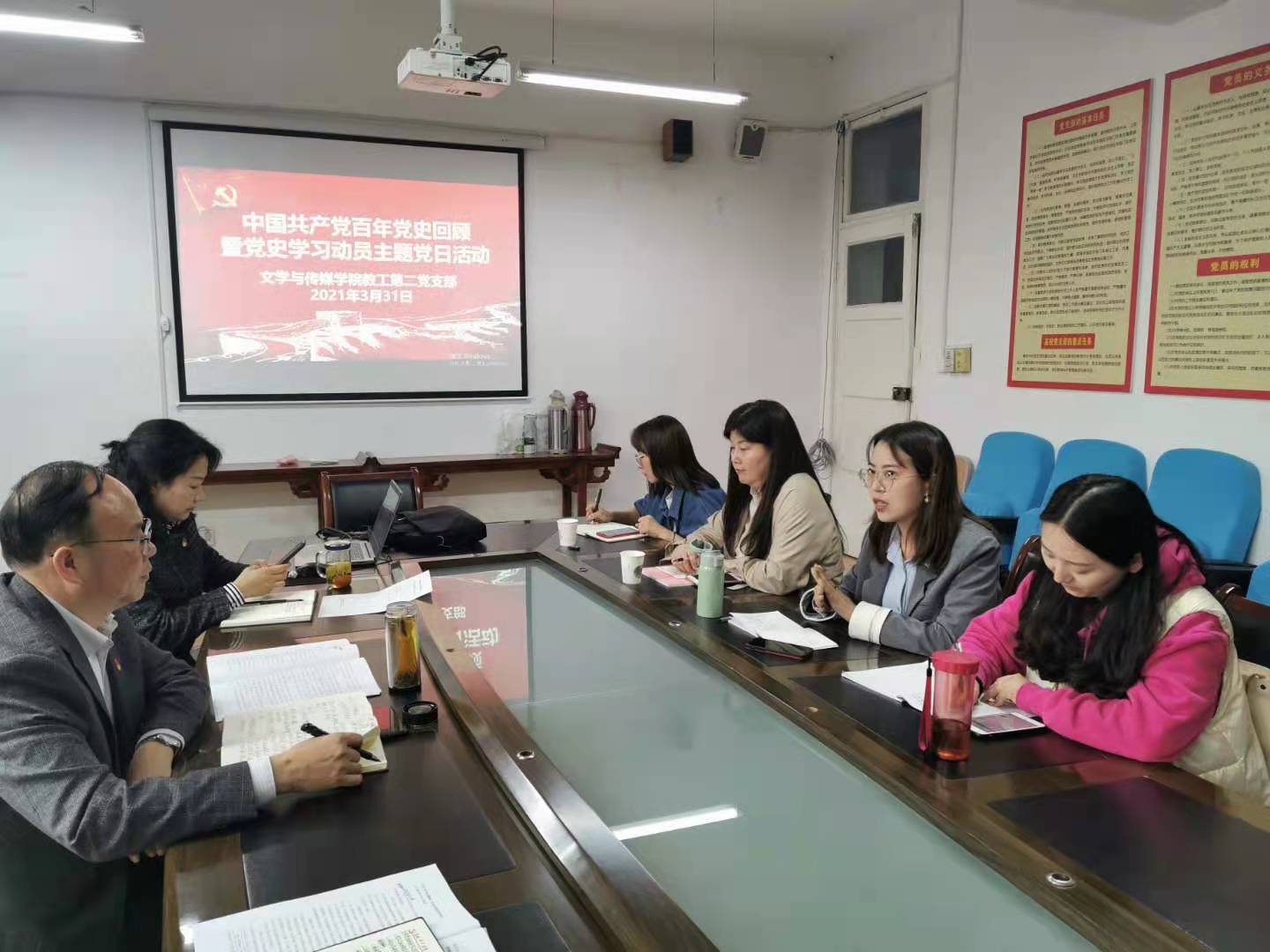 为庆祝中国共产党成立100周年,积极响应习近平总书记在党史学习教育动员大会上的重要讲话精神,掀起“学史明理、学史增信、学史崇德、学史力行”热潮,3月31日下午,澳门网投唯一官网教工第二党支部开展了中国共产党百年党史回顾暨党史学习动员主题党日活动。学校党委副书记杨行玉作为普通党员全程参与会议,会议由教工第二党支部书记谭诗民主持。