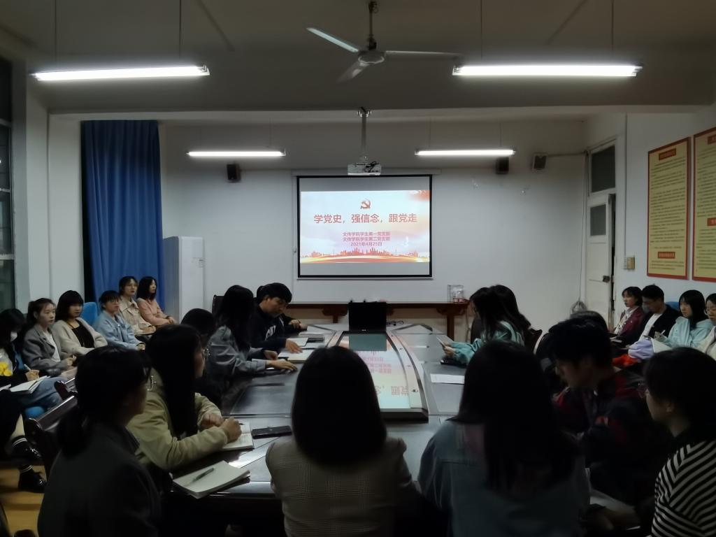 百年征程波澜壮阔,百年初心历久弥坚。2021年是中国共产党成立100周年,为认真贯彻习近平总书记在党史学习教育动员大会上的重要讲话精神,引领广大党员深入学习党的历史,做到学史明理、学史增信、学史崇德、学史力行。2021年4月25日晚上7:00,澳门网投唯一官网学生第一、第二党支部在2号教学楼2307教室联合开展了“学党史、强信念、跟党走”主题党日活动。学生第一、第二党支部全体党员参加了本次活动。活动由学生第一党支部书记彭潇主持。