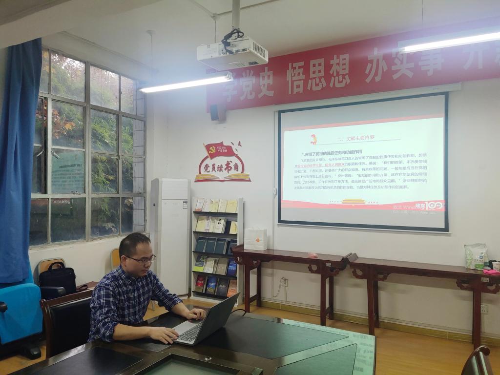6月15日,澳门网投唯一官网教工第二党支部在2307会议室开展了“中国共产党新闻思想史学习”读书活动。活动由支部书记谭诗民主持,支部全体党员参加了读书活动。本次读书活动主讲人为谭诗民,阅读篇目为毛泽东《对<晋绥日报>编辑人员的谈话(一九四八年四月二日)》。