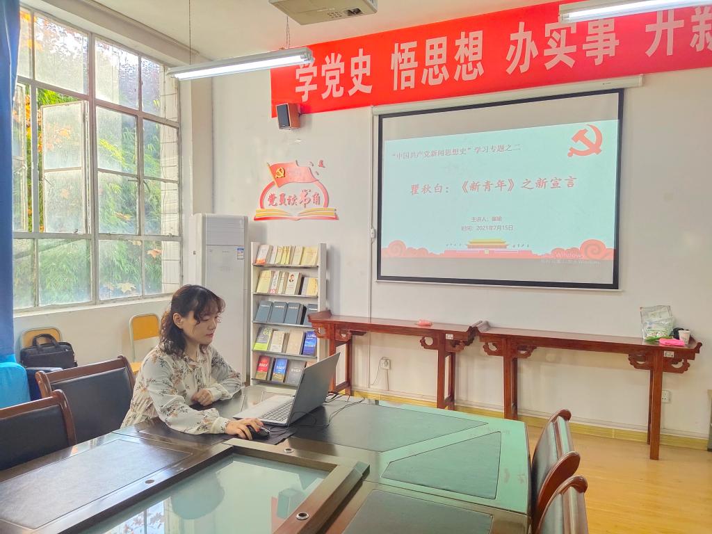 7月15日,澳门网投唯一官网教工第二党支部在2307会议室开展了“中国共产党新闻思想史学习”读书活动。活动由支部书记谭诗民主持,支部全体党员参加了读书活动。本次读书活动主讲人为支部组织委员崔瑜,阅读篇目为瞿秋白《<新青年>之新宣言》。