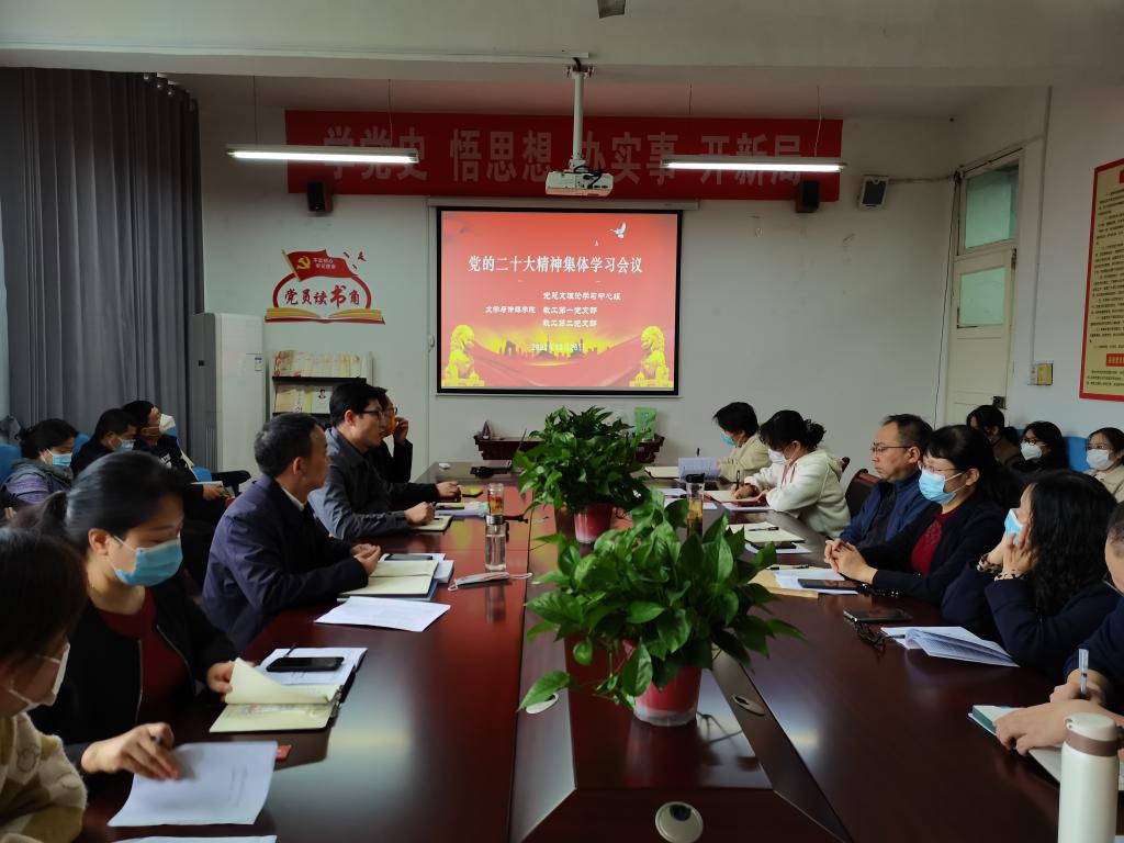 澳门网投唯一官网党总支于10月26日下午在2307召开党的二十大精神集体学习会议,学院理论学习中心组会成员,教工第一党支部、教工第二党支部全体党员,民主党派教师和无党派教师参加本次会议。会议由党总支书记芦伟主持。