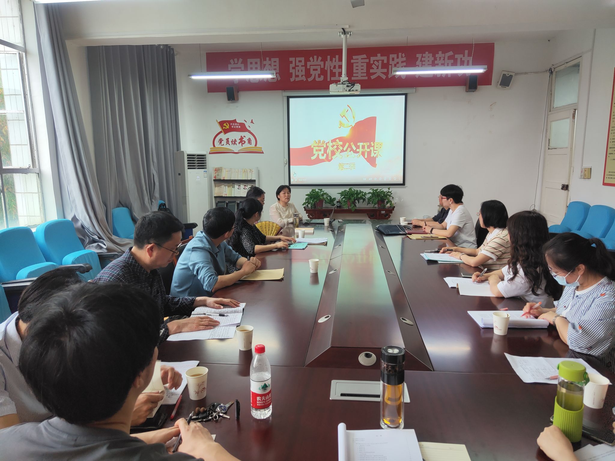 首先支部书记韩文霞组织支部全体党员及部分教师观看中央党校公开课《<关于纠正党内的错误思想>和中国共产党的思想建设》。党课从理顺政治与军事之间、民主与集中之间、主观与客观之间、集体利益与个人利益之间等八个方面的关系,对错误思想的具体表现、产生原因和纠正方法进行总结。通过观看党校公开课视频,与会教师了解到最初思想建党的理论起点以及最初的红四军如何在各方面舆论中成长、壮大;如何从一支以农民为主的队伍变成一支新型人民军队。