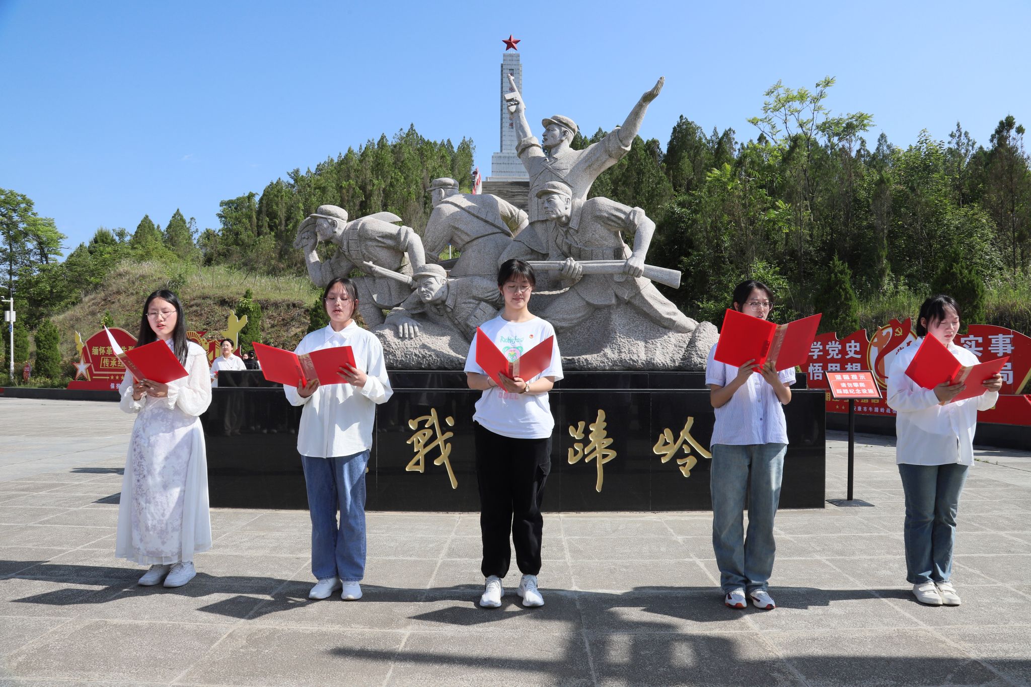 为深入学习习近平新时代中国特色社会主义思想,贯彻落实党的二十大精神,培育青年学子爱国主义情怀,让红色基因世代赓续,2023年5月24日下午,澳门网投党总支学生第一、第二党支部组织学生党员前往牛蹄岭战斗纪念碑开展“永远跟党走,建功新时代”主题党日活动。澳门网投唯一官网党总支副书记杨海蓉、学生第一党支部书记李欣逸、学生第二党支部书记薛涛、团总支书记彭潇以及辅导员邹棠华参加了此次主题党日活动。