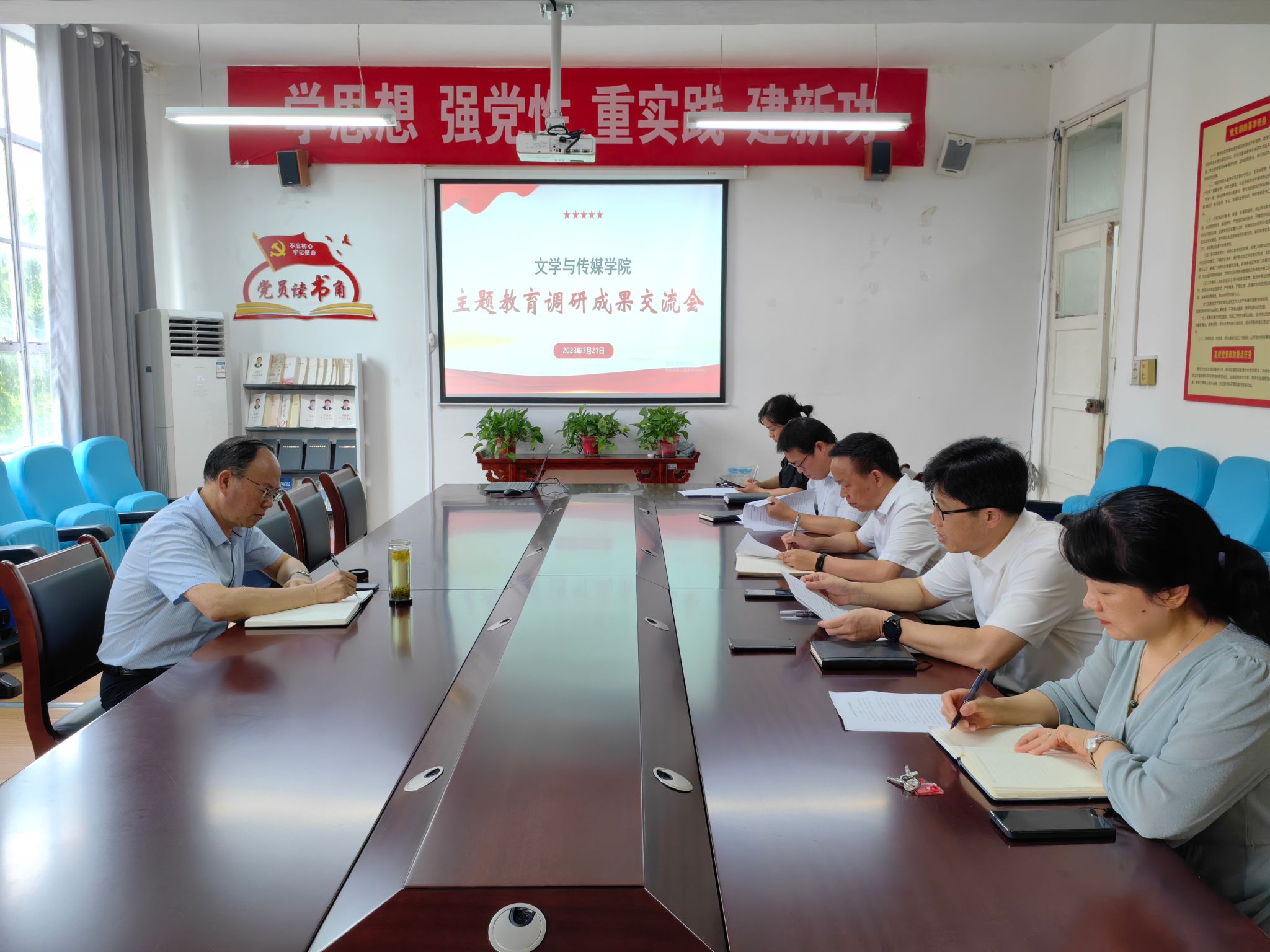 7月21日,文传学院在2307召开学习贯彻习近平新时代中国特色社会主义思想主题教育调研成果交流会。校党委副书记杨行玉到会指导。会议由澳门网投唯一官网党总支书记芦伟主持。