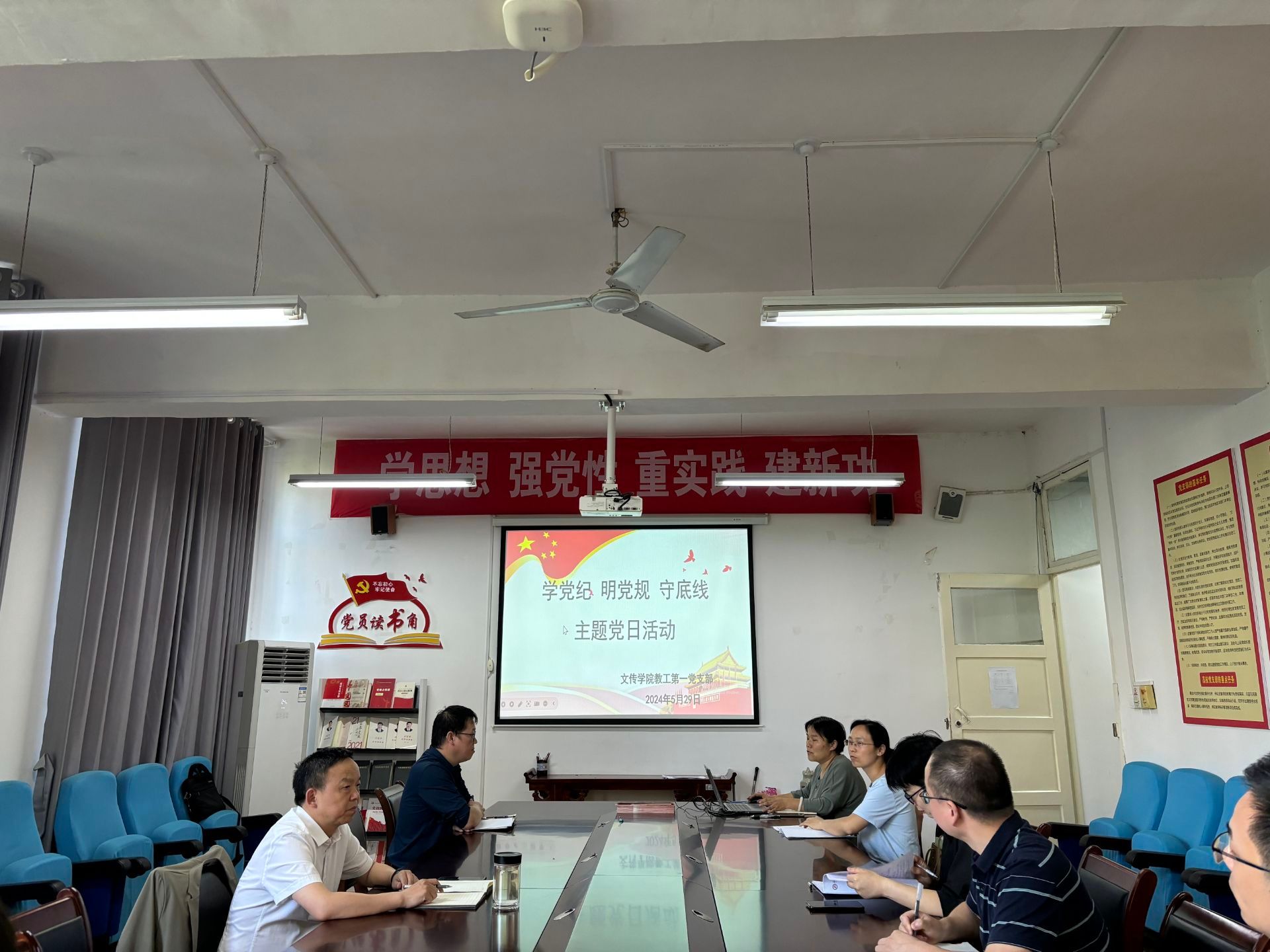 为深入贯彻习近平总书记关于党纪学习教育的重要讲话和重要指示精神,积极落实开展党纪学习教育的工作方案,5月29日下午,澳门网投唯一官网教工第一支部组织全体党员开展“学党纪、明党规、守底线”五月主题党日活动,由支部书记韩文霞主持。