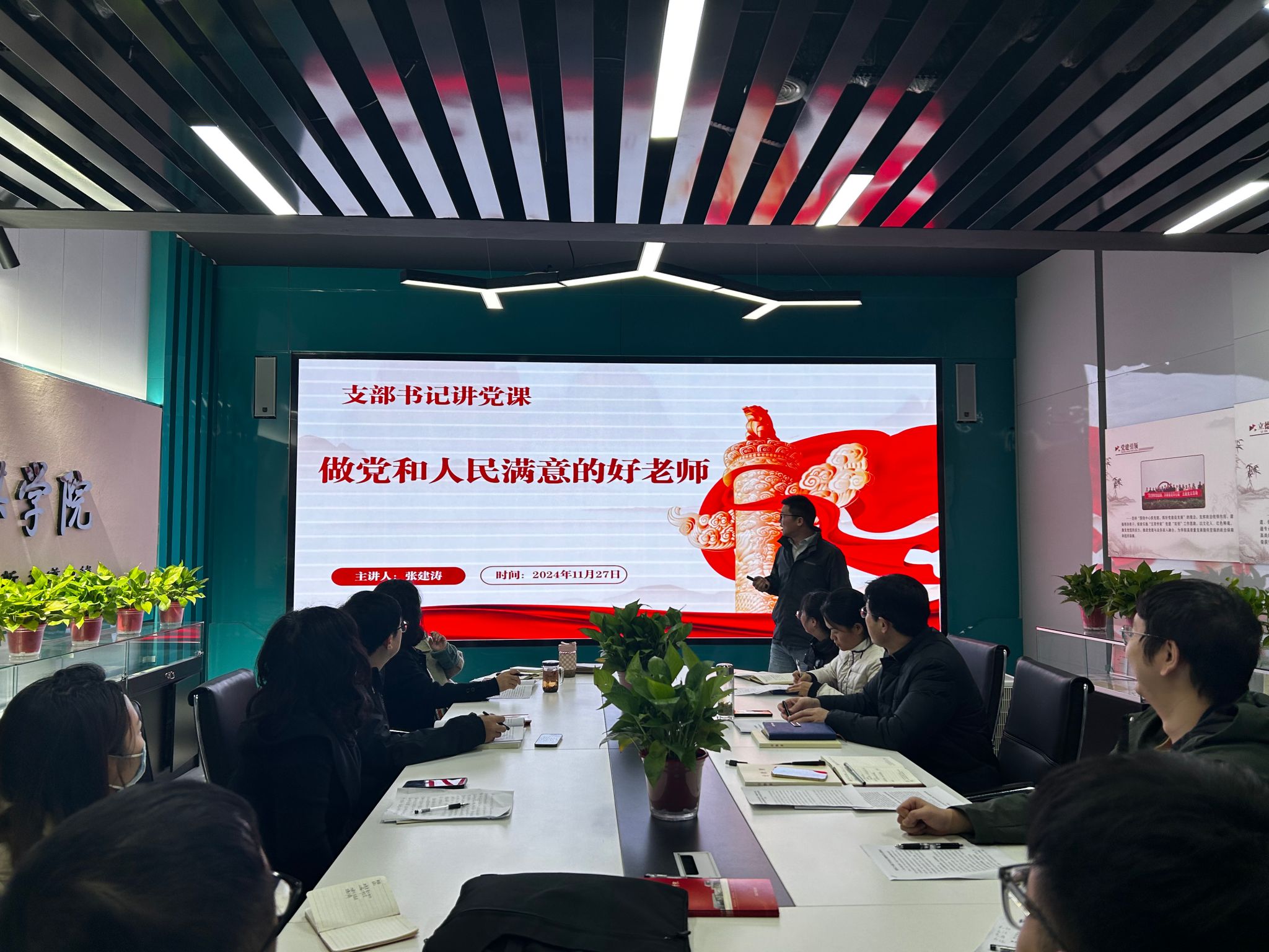 11月27日,澳门网投唯一官网教工第二党支部在一阵热烈而庄重的气氛中,开展了主题为“做党和人民满意的好老师”的支部书记讲党课活动。本次活动由支部书记张建涛主讲,全体支部党员教师积极参与,共同探讨了如何成为一名党和人民满意的好老师。