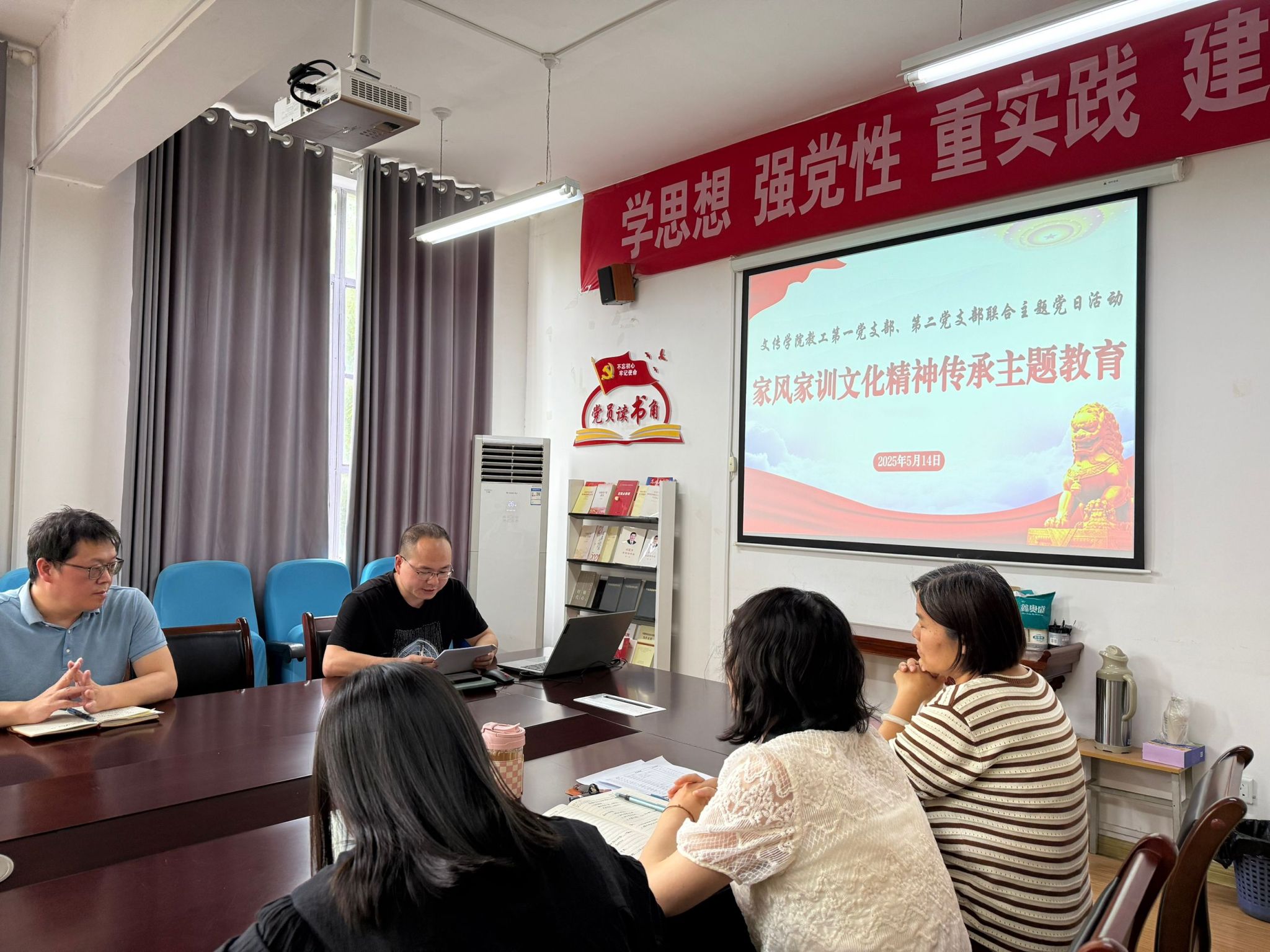 为深入学习贯彻习近平总书记关于注重家庭家教家风建设的重要论述,传承优良传统,弘扬时代新风,5月14日下午,澳门网投唯一官网教工第一、第二党支部在2307会议室联合开展“家风家训文化精神传承主题教育”主题党日活动,本次活动教工第一党支部书记韩文霞主持,谭诗民副教授主讲,全体党员教师参加。