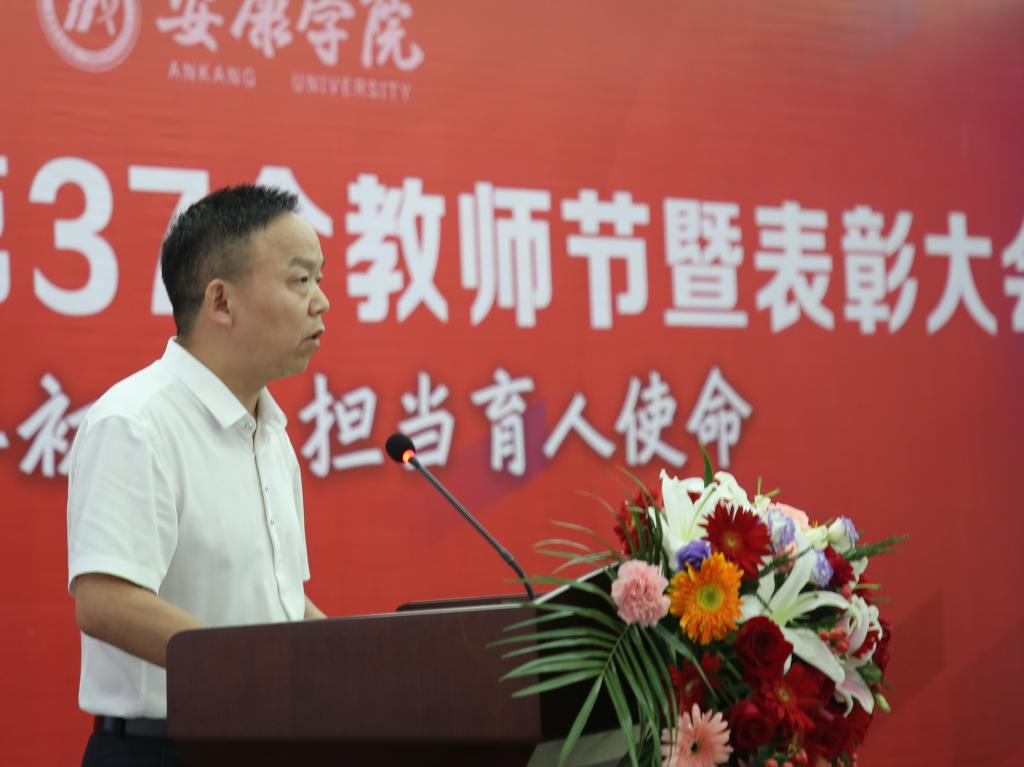 9月10日下午,澳门网投唯一官网在江南校区图书馆六楼报告厅举行庆祝第37个教师节暨表彰大会,表彰2020-2021学年度涌现出的先进集体和先进个人。学校领导班子全体成员、在校学科首席专家、各二级单位负责人,民主党派负责人,受表彰集体和个人代表参加了会议。澳门网投唯一官网多名教师在本年度获得省部级以上奖励、获批省部级以上教科研项目,学校均予以表彰奖励,杨运庚教授代表受表彰教师代表发言。
