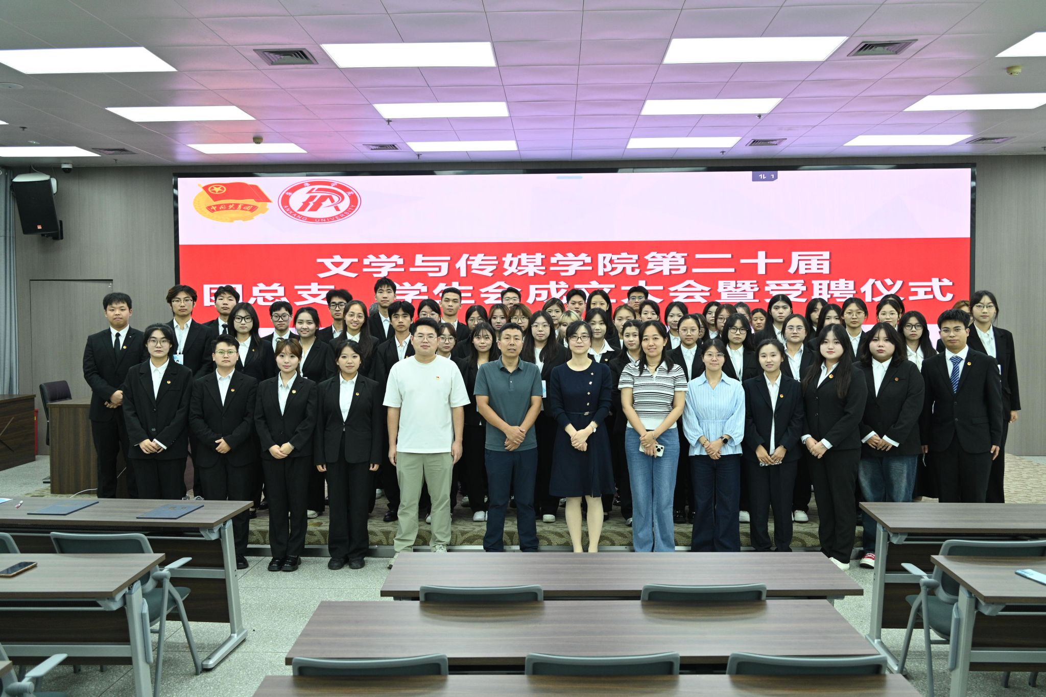 9月19日晚7点,澳门网投唯一官网在图书馆六楼报告厅举行第二十届团总支、学生会成立大会暨受聘仪式。党总支副书记侯红艳、学工办主任薛涛、团总支书记彭潇、辅导员刘言军、喻言及全体学生干部参加会议。会议由汉语言文学2024级1班李炫烨主持。