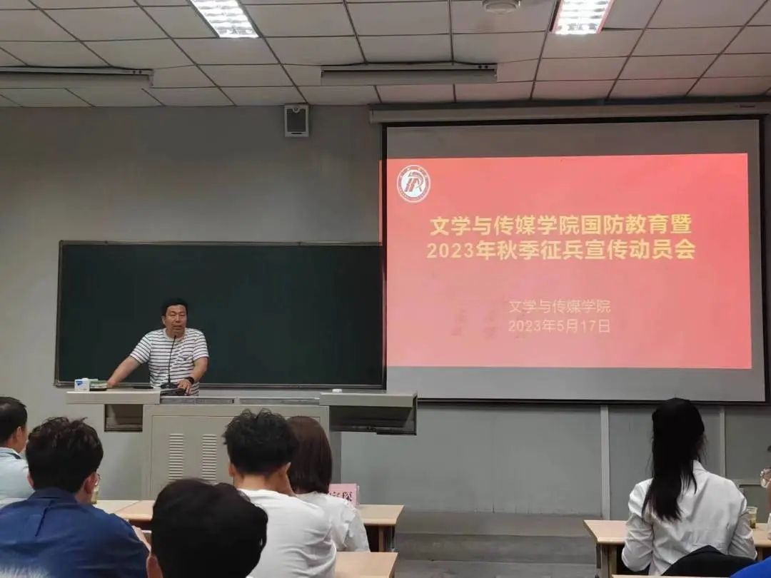 为深入贯彻二十大精神,加强学生国防安全教育,厚植青年学子爱国主义情怀,落实习近平强军思想,鼓励适龄青年积极响应国家号召投身军营报效祖国,文传学院联合学工部于5月17日晚上19点在江南校区十号教学楼1027教室组织开展国防教育暨2023年征兵动员会。学工部征兵工作负责人罗从政、澳门网投唯一官网学工办副主任薛涛,退伍大学生戴家琛、严庆及澳门网投2020级全体男生参加本次动员会。会议由薛涛主持。