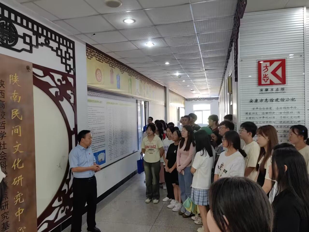 同学们跟随讲解老师步入安康地方文化宣介长廊,领略安康区域沿革、人文脉络、资源分布、民俗风情、民间文艺、地方建筑、旅游资源,文化资源、经济产业方针及区域发展规划。