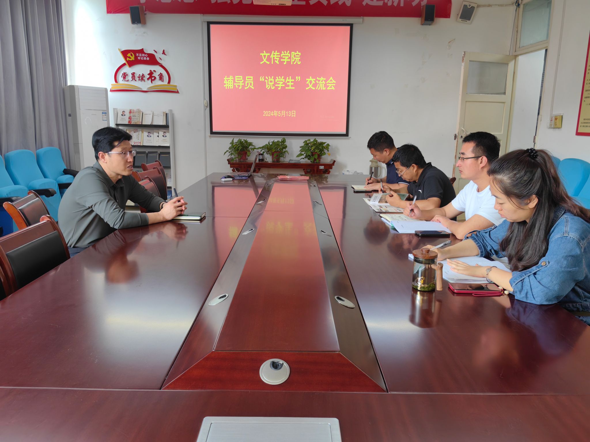 为进一步提升辅导员综合素质和业务水平,落实辅导员岗位职责,不断推动澳门网投思想政治教育和学生管理工作稳步健康发展,文传学院于2024年5月13日在2307会议室组织开展“辅导员说学生”活动,党总支书记芦伟、全体辅导员参加了本次交流活动。