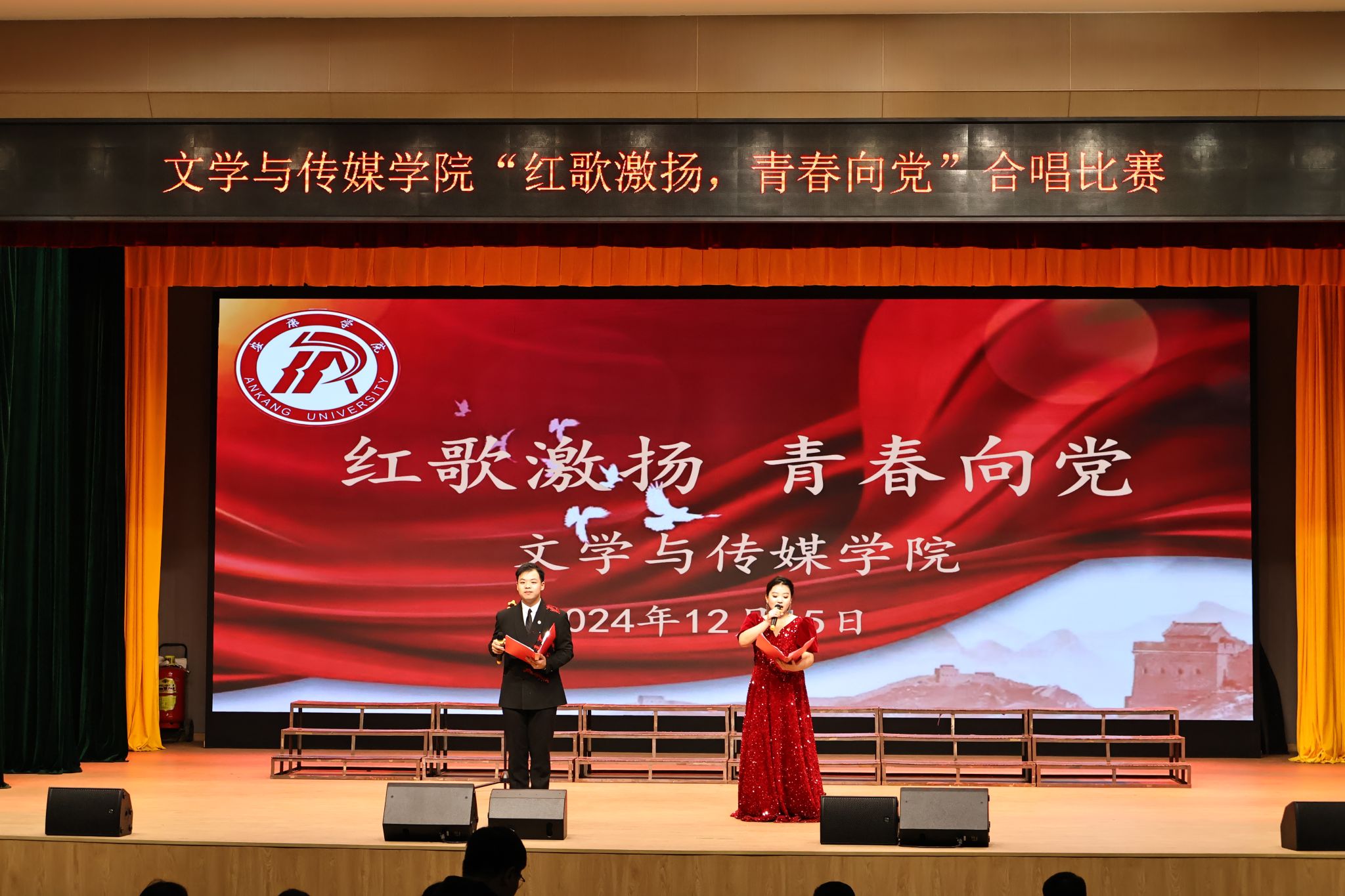 12月15日晚,澳门网投唯一官网在江南校区大礼堂成功举办了主题为“红歌激扬,青春向党”的合唱比赛。此次活动旨在通过红歌传唱,激发学生的爱党爱国情怀,增强集体凝聚力,展现新时代青年的精神风貌。学院1-3年级25个班级全部参赛,李祉怡、李炫烨主持。校团委组织宣传部部长沙薇、学院党总支副书记杨海蓉及院全体辅导员担任本次合唱比赛评委。