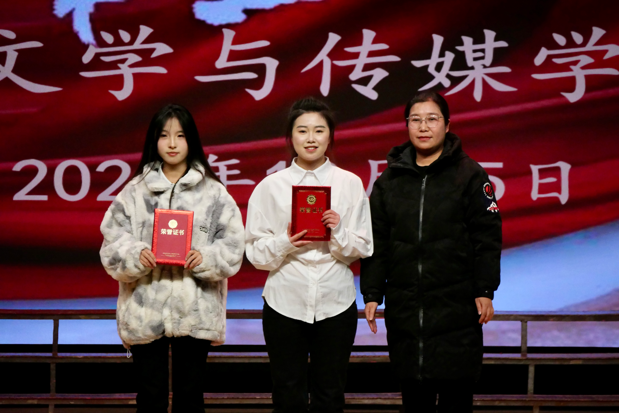 评委老师们根据演唱技巧、舞台表现、情感表达等多个维度对各班级进行综合评分。经过激烈角逐,秘书学2022级1班脱颖而出,荣获特等奖,汉语言文学2023级5班、秘书学2024级1班等10个班级分别获得一、二、三等奖。评委老师们获奖班级颁发了获奖证书并合影留念。