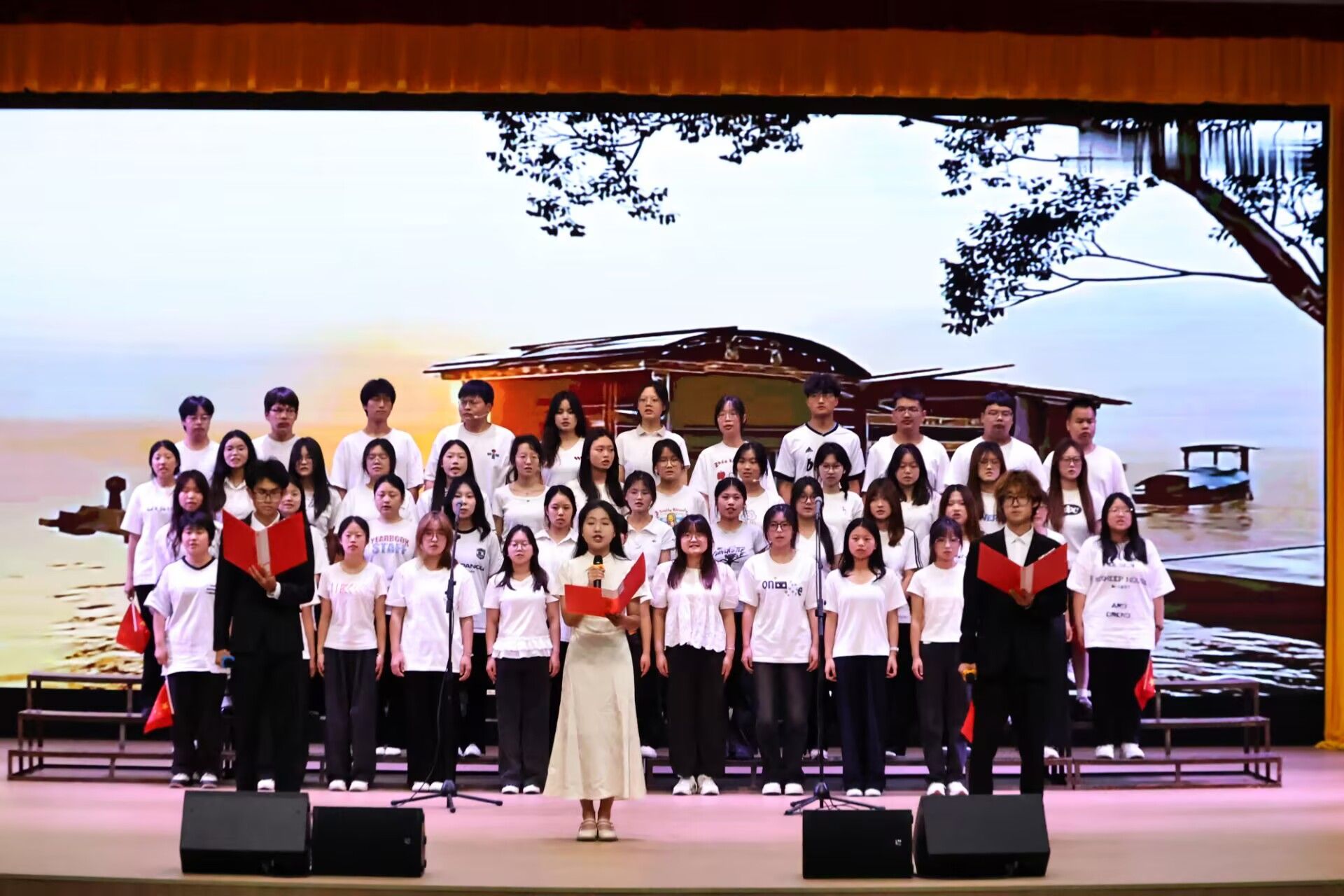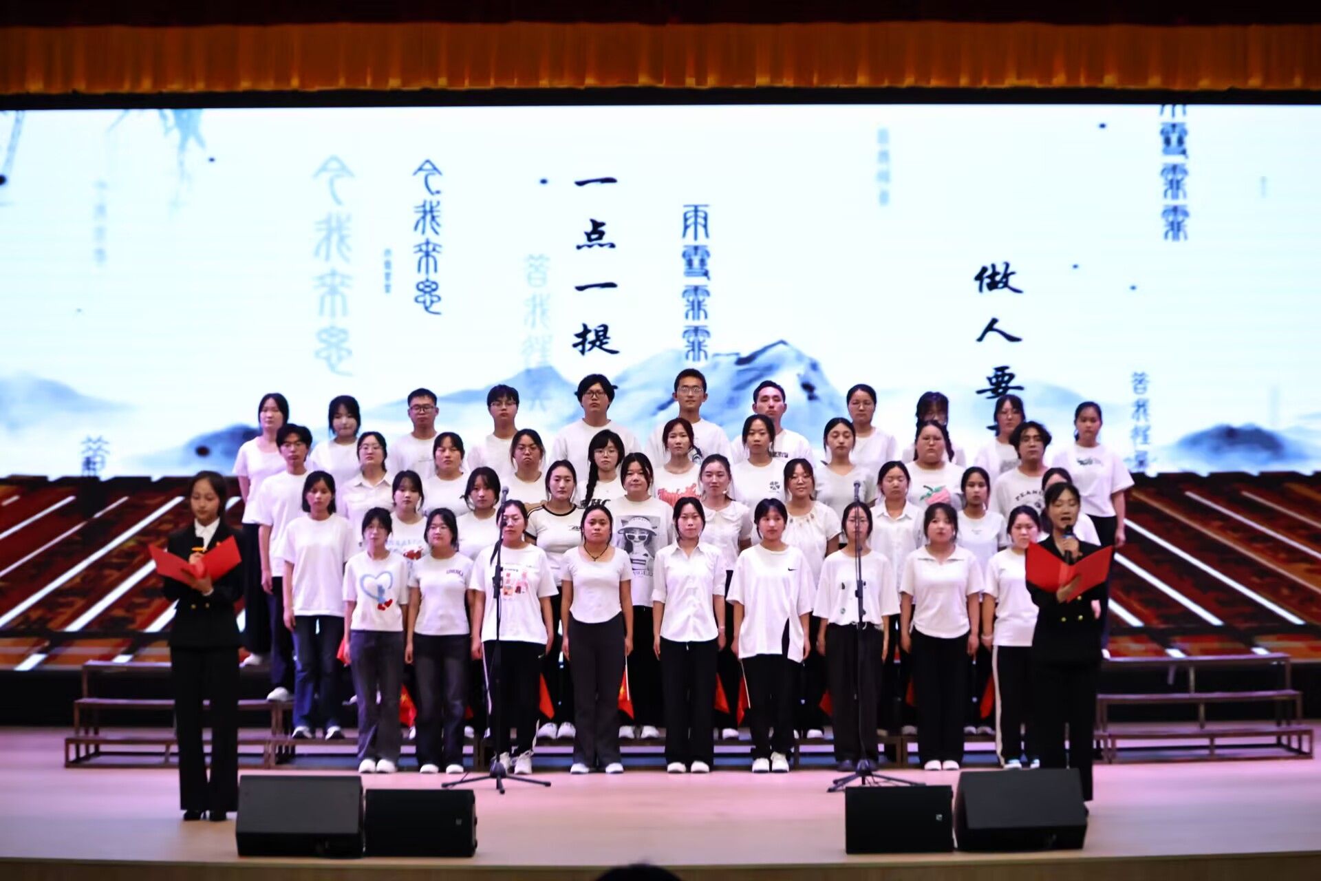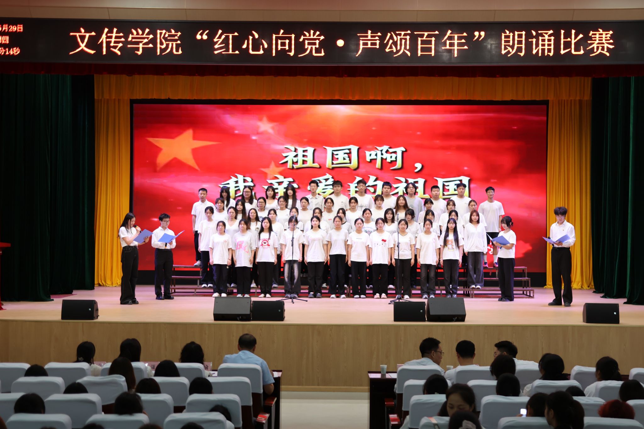 为纪念中国人民抗日战争暨世界反法西斯战争胜利80周年,大力弘扬爱国主义精神,增强学生民族自信心与自豪感,5月29日晚,澳门网投唯一官网在江南校区大礼堂举办“红心向党,声颂百年”朗诵比赛。学院党总支副书记任森龙,专业老师崔瑜、黄治强,全体辅导员及2023、2024级学生参加活动,活动由李祉怡、李炫烨主持。