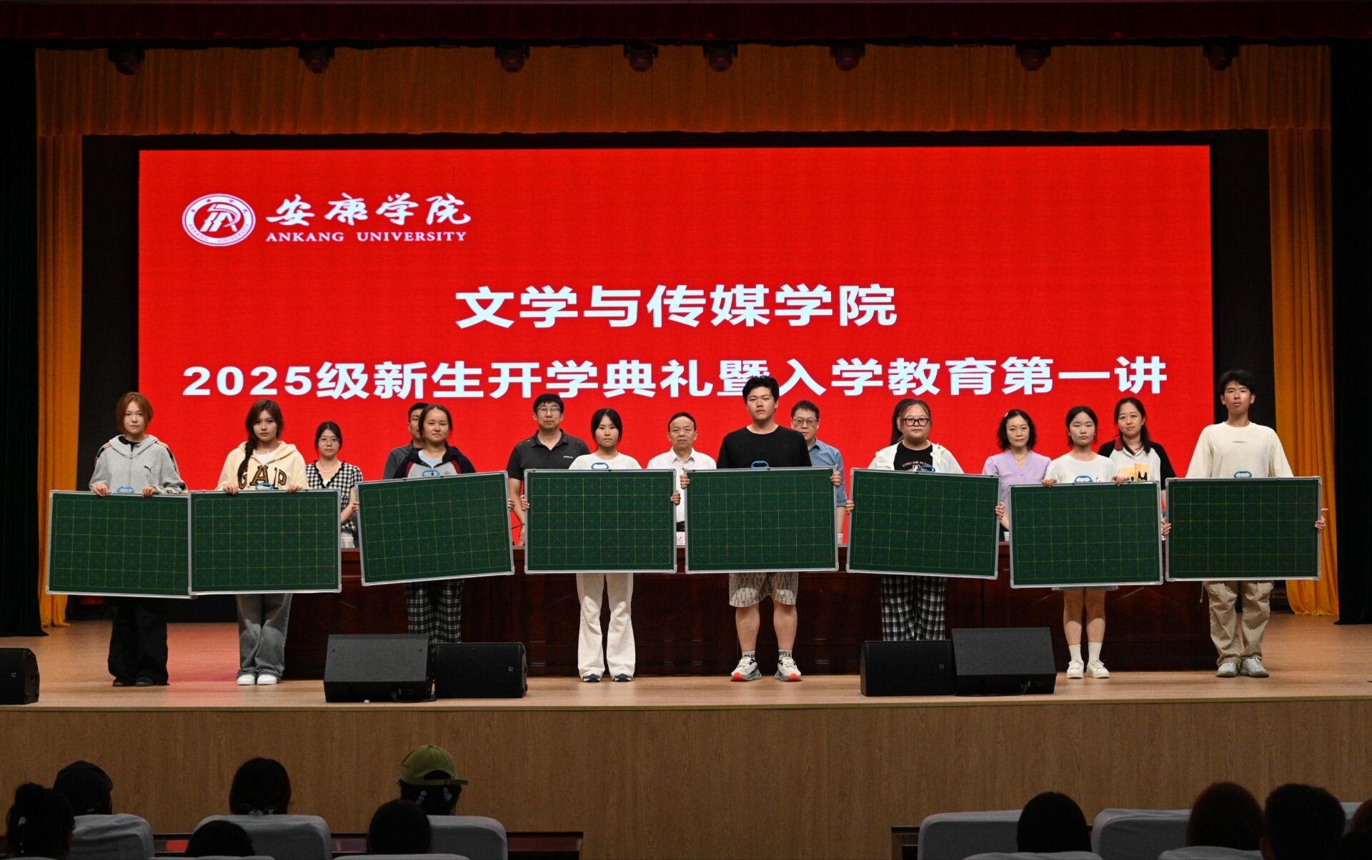 副院长朱云从指导思想、教育主题、安排部署等四个方面解读了《澳门网投唯一官网2025级新生入学教育方案》;副院长曹刚宣读了《汉语言文学专业小黑板练字规范要求》;与会老师为新生代表发放了小黑板。