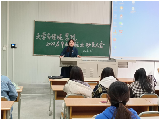 2022年3月1日下午4时,澳门网投唯一官网在十号楼1027、1038教室召开2022届毕业生就业动员大会。本次大会由澳门网投唯一官网辅导员艾全霞主持,2022届澳门网投唯一官网汉语言文学专业、秘书专业、网络与新媒体专业全体毕业生参加会议。