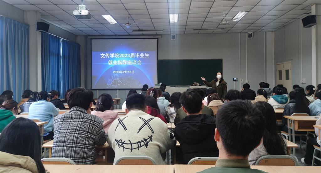 2023年2月16日下午,澳门网投唯一官网在1012教室召开汉语言文学、网络与新媒体专业2023届毕业生就业指导座谈会,汉语言文学、网络与新媒体专业2019级全体在校生参会,会议由辅导员老师彭潇主持。