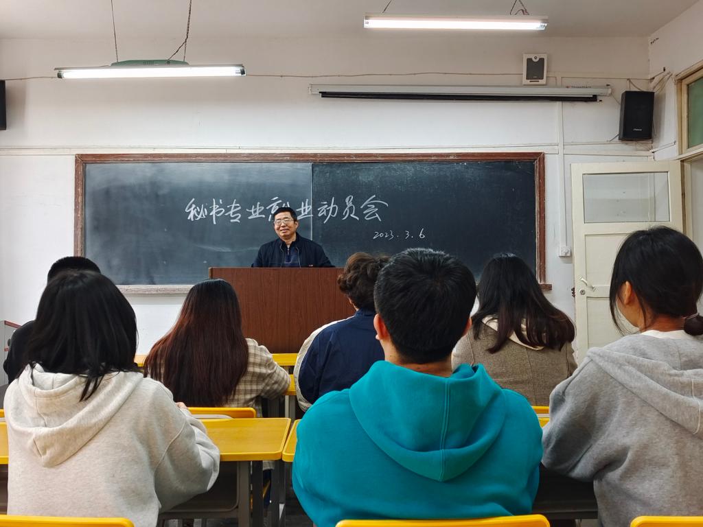 2023年3月6日,澳门网投唯一官网在2305教室召开了新学期就业推进会,辅导员邹棠华主持会议,秘书学2019级全体学生参加了会议。