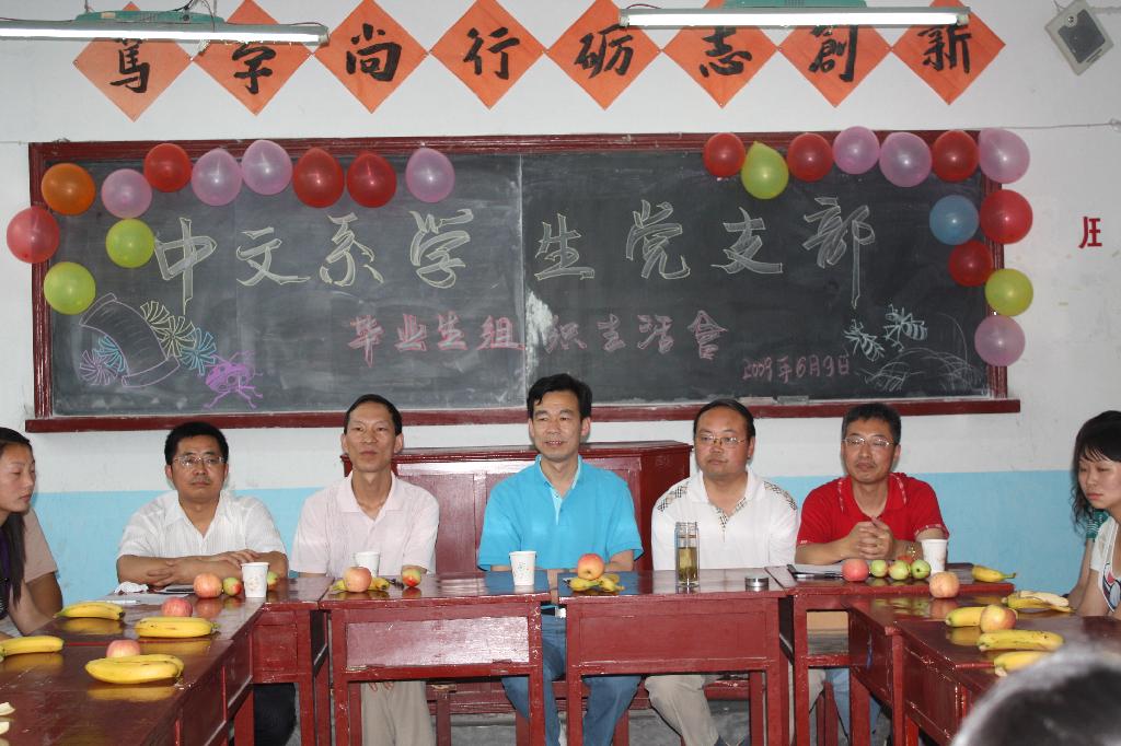 6月9日下午4:30分,在09届毕业生即将离校之际,中文系学生党支部在2号教学楼2305教室隆重召开毕业生组织生活会。学院党委副书记、纪委书记闵小平,学工部部长郑树青,中文系主任戴承元,中文系党总支书记沈军,中文系党总支委员邹棠华和09届55名毕业生党员一起度过了这次特殊的组织生活会。组织生活会由邹棠华老师主持。
