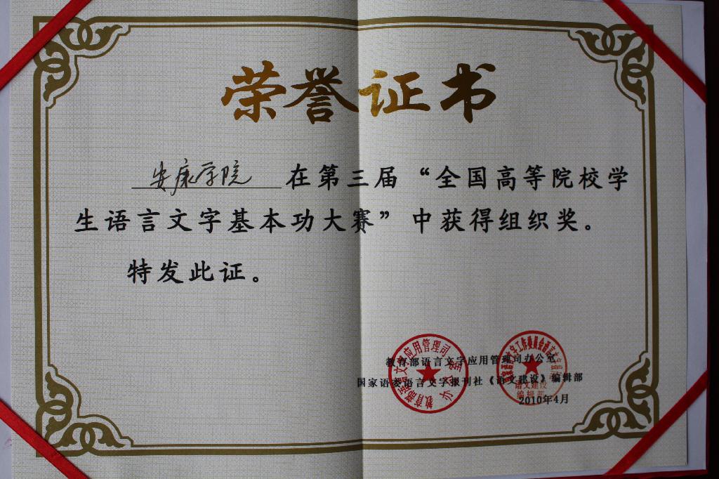导航痕迹 首页 > 新闻通知 > 学院新闻 > 正文 学院新闻 通知公告 中文系在“第三届全国高等院校学生语言文字基本功大赛”中再获佳绩 发布人: 发布日期:2010年05月10日 阅读次数: 中文系汉语言文学、语文教育、文秘专业07级、08级、09级共670名学生于2009年12月在赵桃老师的辅导、组织下,参加了由教育部、国家语委主办的第三届全国高等院校学生语言文字基本功大赛。 本届大赛全国有300多所院校的12万学生参加,澳门网投中文系有81名学生获奖,其中一等奖17人,二等奖27人,三等奖37人;在参赛的300余所院校中,澳门网投荣获组织奖。这是澳门网投中文系继前两届大赛获得的又一次好成绩。