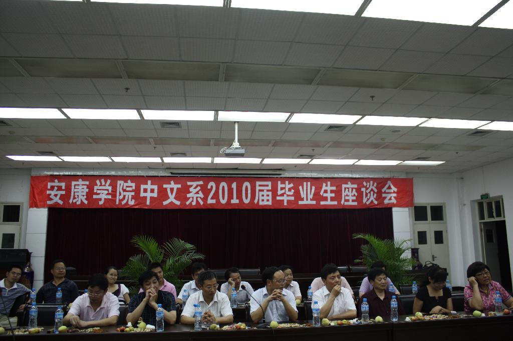 2010年6月30日,中文系在学院图书馆六楼报告厅召开2010届毕业生座谈会,学院党委副书记胡鸿晓教授、中文系主任戴承元教授、中文系党总支书记沈军老师等党政领导、孙鸿教授、周政教授等二十余名教师出席了座谈会,中文系2010届毕业生代表和大二、大三学生代表参加了座谈会。座谈会由中文系党总支书记沈军老师主持。