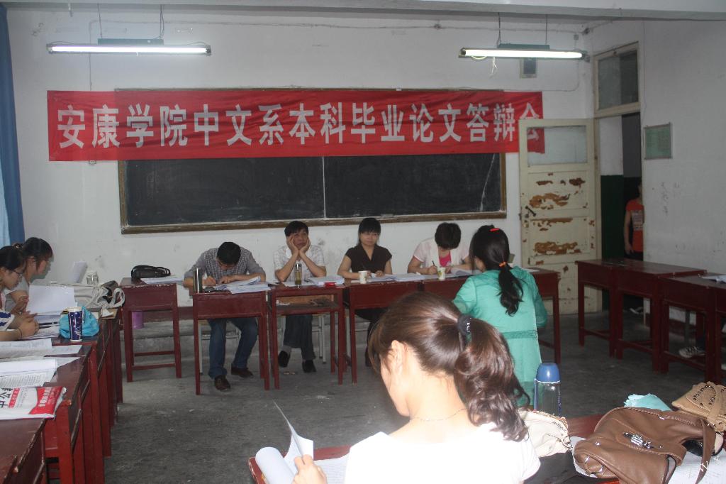 中文系2012届共有187名本科毕业生,其中包括103名专升本学生。学生论文在指导老师指导下,经过开题报告撰写、开题论证、三稿修改、论文评阅等多个环节,至2012年4月底完成写作,进入答辩程序。