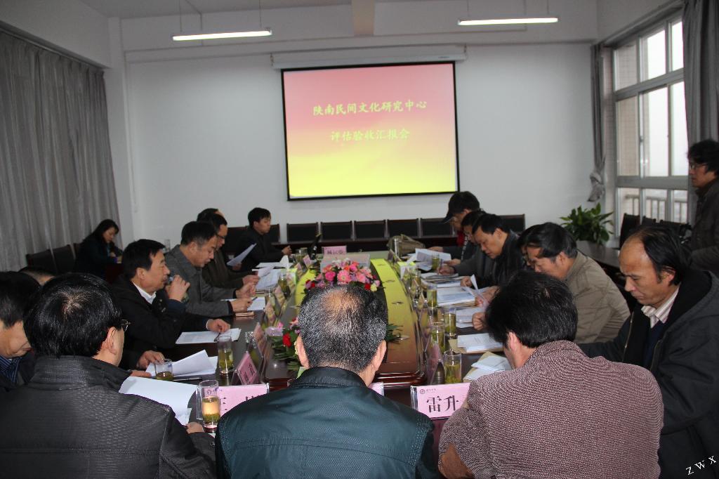 2012年11月28日下午,教育厅科技处甘世平处长、李梦泽调研员带队,由西安财经学院副院长周作斌教授任组长、西北大学徐卫民教授、陕西师范大学张志春教授、西北大学杨乐生教授、西安文理学院陈正奇教授组成的专家组来到澳门网投唯一官网,对陕南民间文化研究中心建设工作进行验收评估。