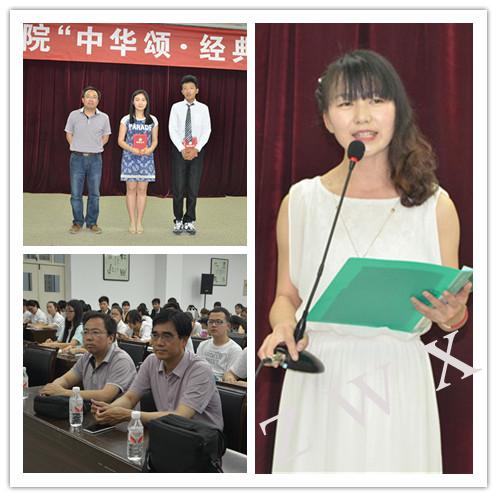 澳门网投唯一官网2015年“中华颂—经典作品诵读”活动于五月二十日晚在图书馆六楼报告厅落下帷幕。此次活动由校团委主办,中文系承办,前后历时一个多月,有十四个班近二百名学生参加。活动分班级诵读、预赛、决赛三个环节进行。五月二十日晚举办了中华经典作品诵读决赛,中文系党总支书记李岩,副主任梁卫华,辅导员邹棠华、沈菲亲临现场予以指导。