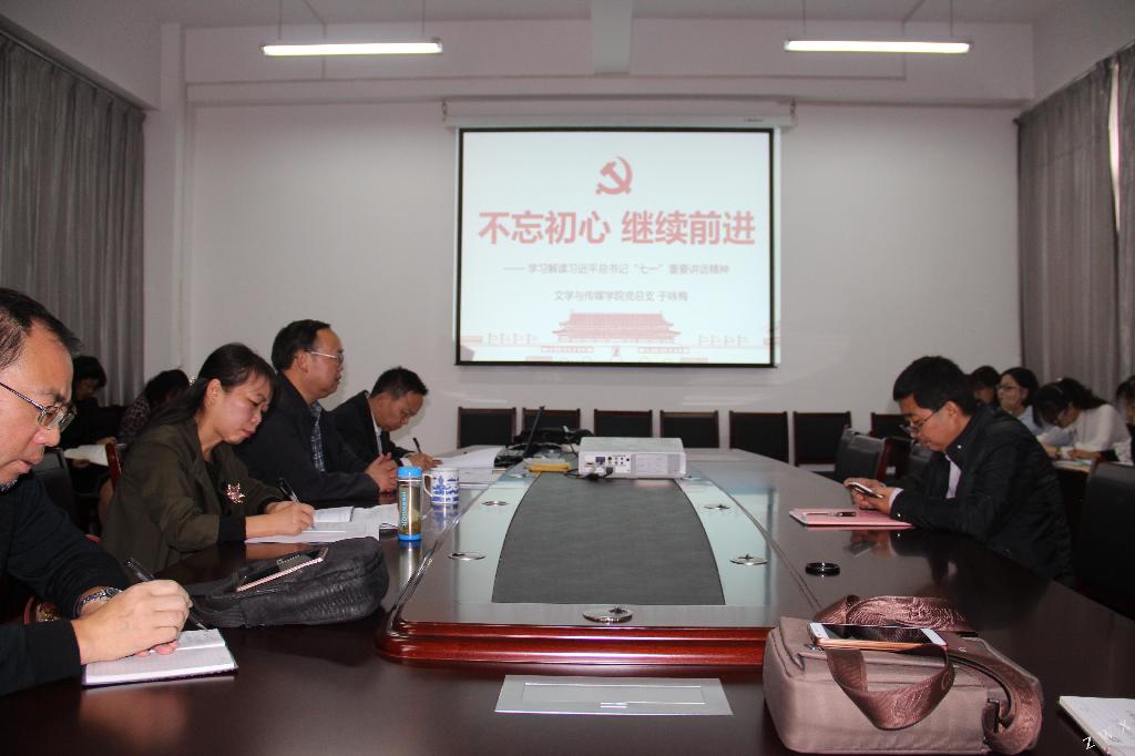 10月19日下午,澳门网投唯一官网党总支在图书馆六楼陕南民间文化研究中心会议室组织全体教职工开展政治理论专题学习,学习习近平总书记在庆祝中国共产党成立95周年大会的重要讲话。