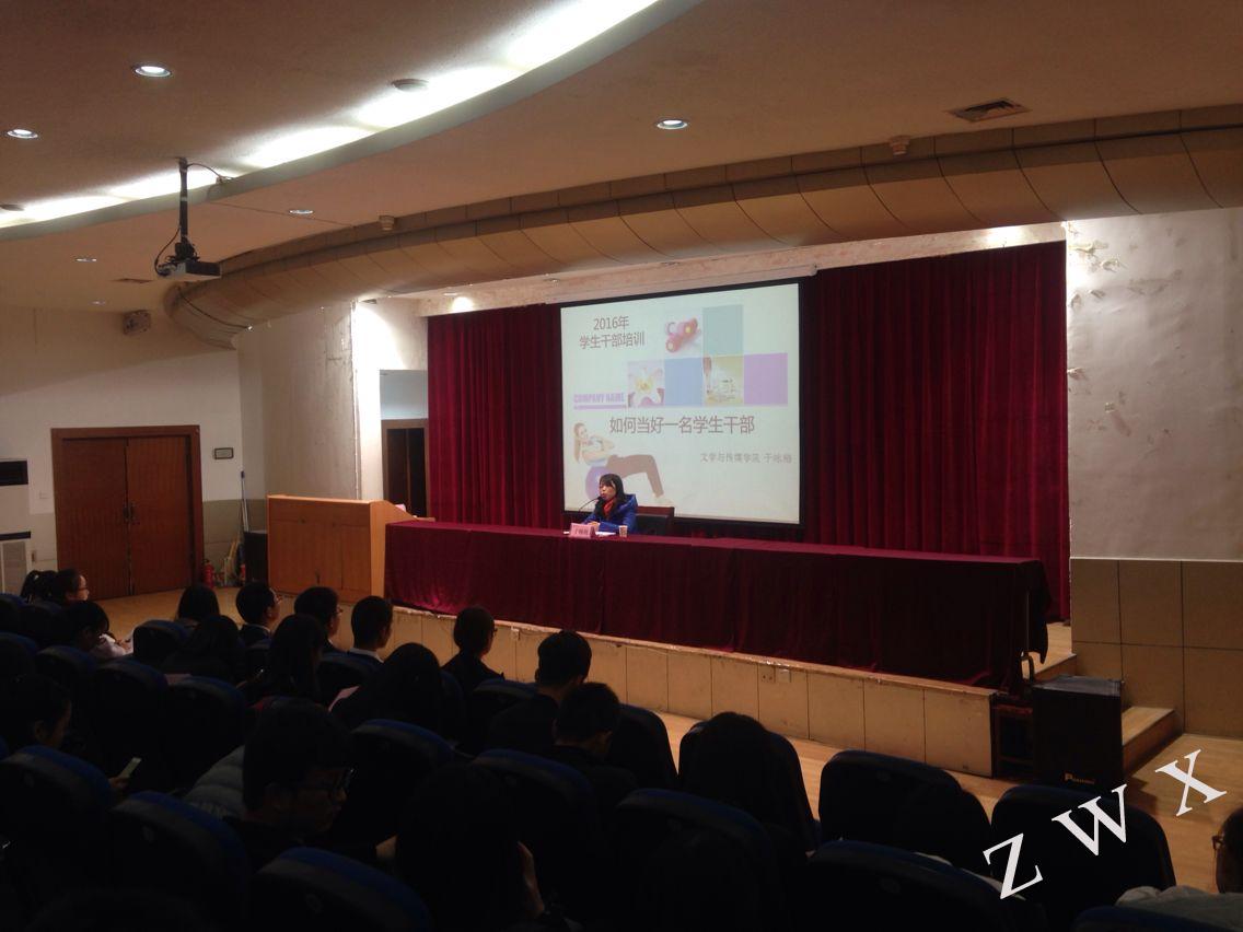 于咏梅从培养党的后备干部和高校思想政治工作重要性的高度,从学风建设和学生日常管理两个层面,明确阐述了学生干部培训的重要性。她语重心长,侃侃而谈,从理论阐述,到具体案例分析,循循善诱,潜移默化。一个半小时的讲座,学生干部仔细聆听,受益匪浅。