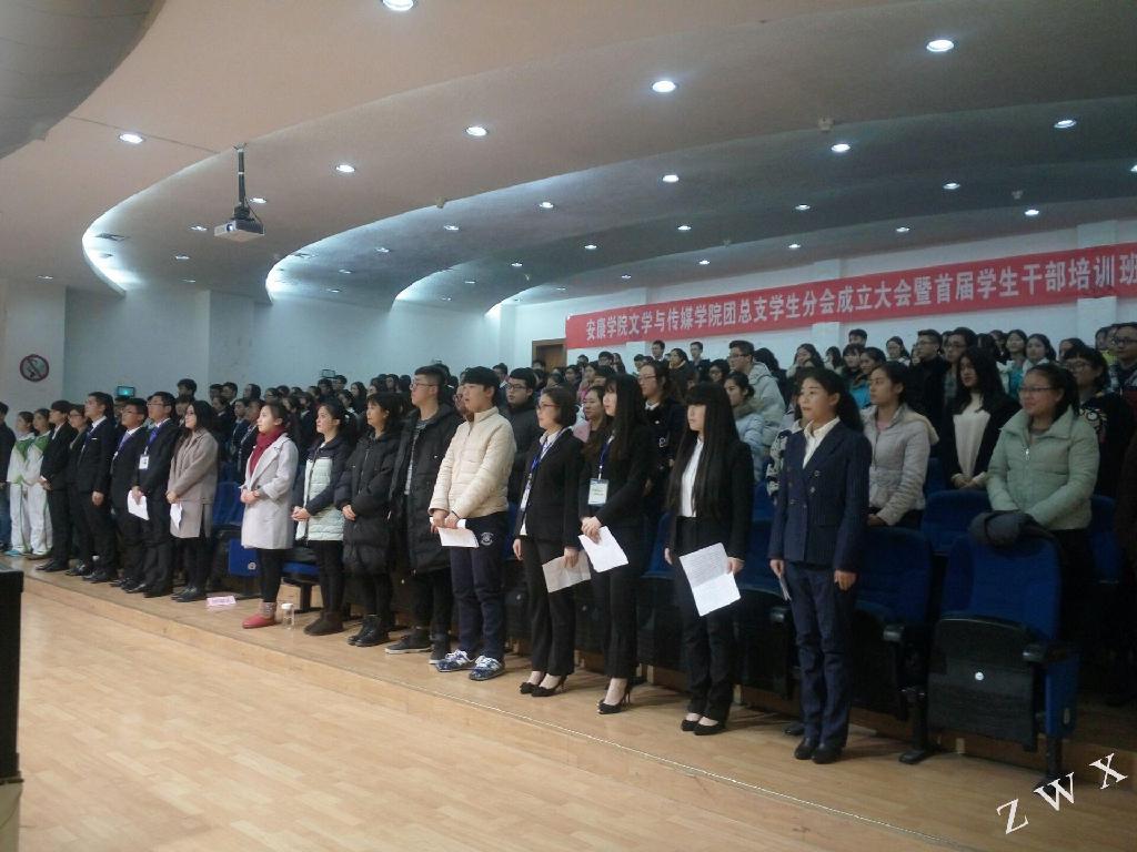 2016年12月1日下午,澳门网投唯一官网在1号教学楼6楼报告厅召开了团总支、学生分会换届暨首届学生干部培训大会。澳门网投唯一官网党总支书记于咏梅,副院长梁卫华、杨运庚,辅导员邹棠华、艾全霞、沈菲,团总支、学生会全体成员,社团和班级主要干部200余人参加了大会,大会由团总支书记沈菲主持。