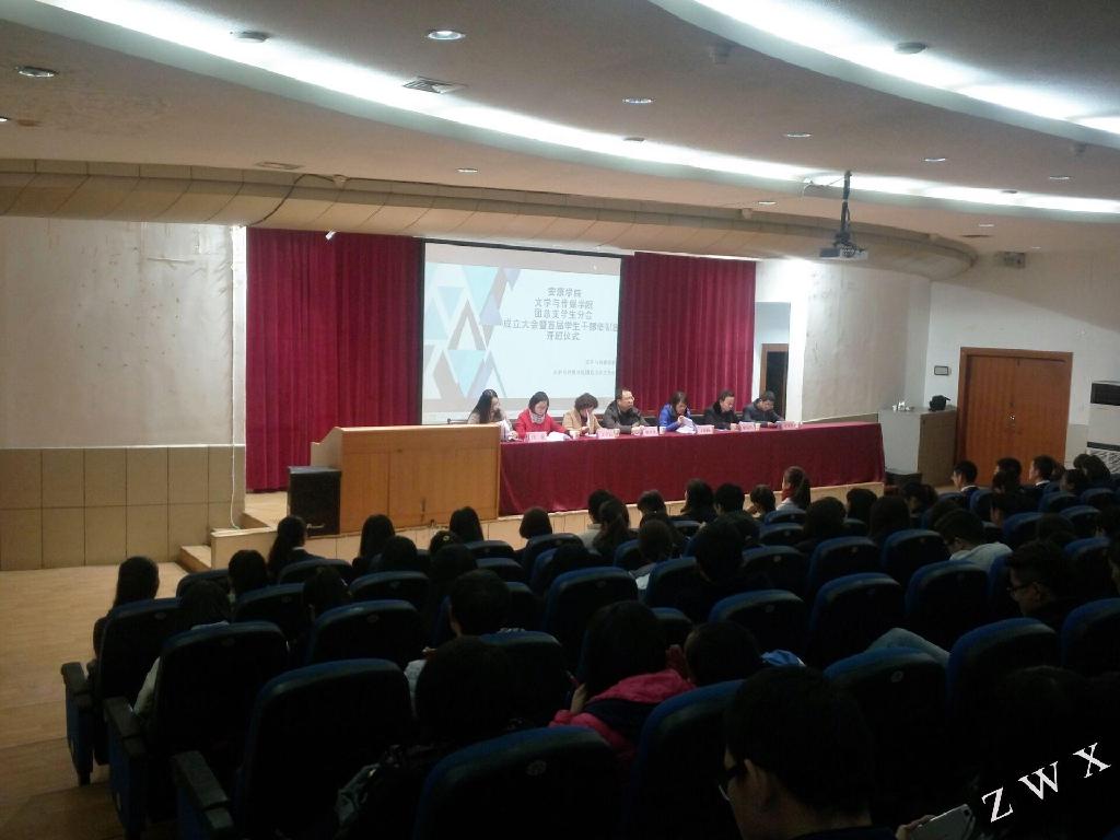 大会伊始,全体起立齐唱国歌,学生会进行工作交接,上一届学生会主席焦锦做学生分会上年度工作报告;梁卫华和杨运庚分别宣布了团总支、学生会及社团的主要干部名单;新一届学生会主席许昭阳代表学生会做工作设想及规划。学生干部代表江义红、张雯燕、任翠翠、吴佳昊分别代表团总支、学生会、社团、班级表态发言;随后学院领导给学生干部颁发了聘书。团总支、学生分会换届大会在热烈的掌声中圆满落下帷幕。