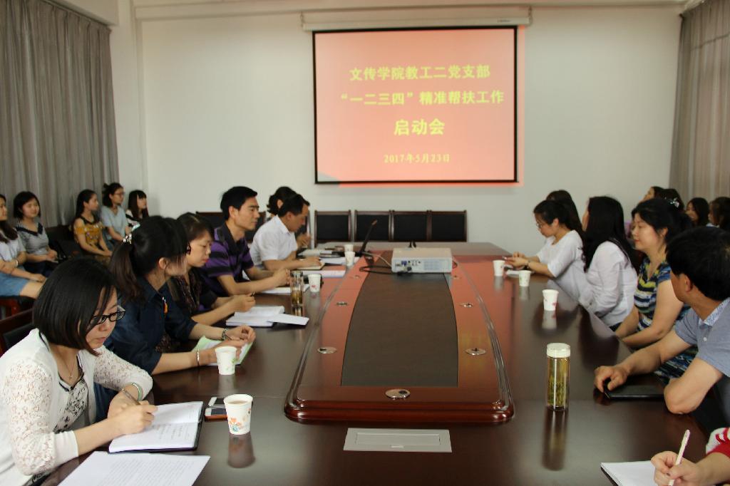 2017年5月23日,澳门网投唯一官网教工二党支部“一二三四”精准帮扶工作启动会在陕南民间文化研究中心会议室举行,学校党委委员、组织部部长屈险峰,澳门网投唯一官网党总支书记于咏梅、澳门网投唯一官网教工二党支部书记李景林、澳门网投唯一官网学生二党支部书记沈菲、教工二党支部支委及党员教师、澳门网投唯一官网秘书学专业2014、2015级受帮扶学生参与了启动会。启动会由组织委员侯红艳主持。