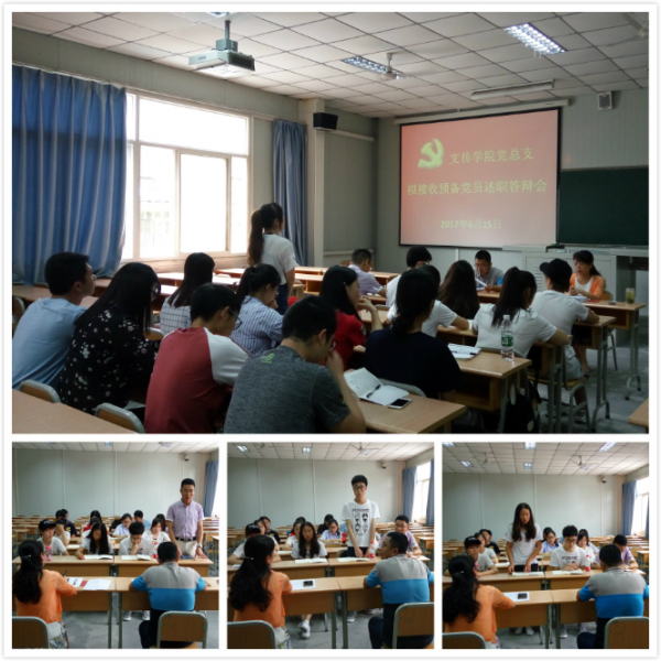 6月15日下午,在1014教室澳门网投唯一官网党总支首次召开了拟接收预备党员述职答辩会。院党总支书记于咏梅、总支组织委员邹棠华代表总支委员会对15名党课培训新结业的发展对象轮流进行了述职答辩,对其理想信念、政治素养、党的理论知识、宗旨意识、工作表现进行了综合考核。