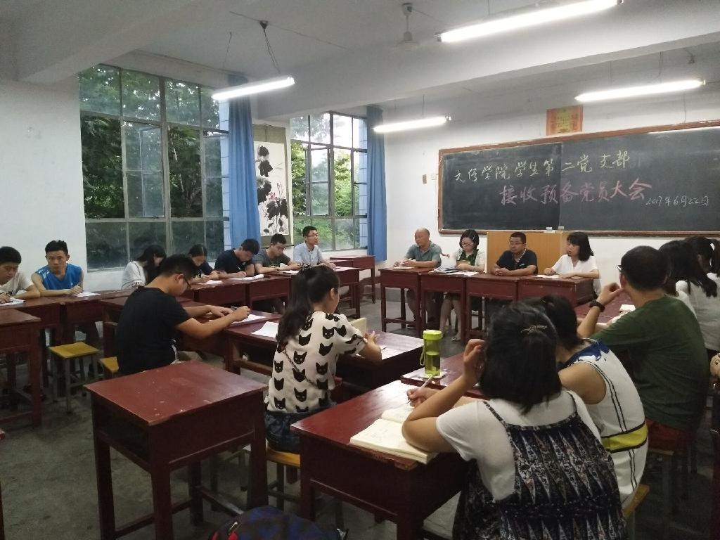 6月22日晚,澳门网投唯一官网学生第二党支部在2407教室召开支部党员大会,主要议题为2017年上半年拟接收预备党员事宜。会议应到党员18名,其中正式党员9名,预备党员9名;实到党员13名,其中正式党员8名,预备党员5名,5名发展对象参加了大会。大会邀请了党总支书记于咏梅、党总支组织委员邹棠华,学生第一党支部书记郝礼军、学生第一党支部支委艾全霞出席会议。会议由学生第二党支部书记沈菲主持。